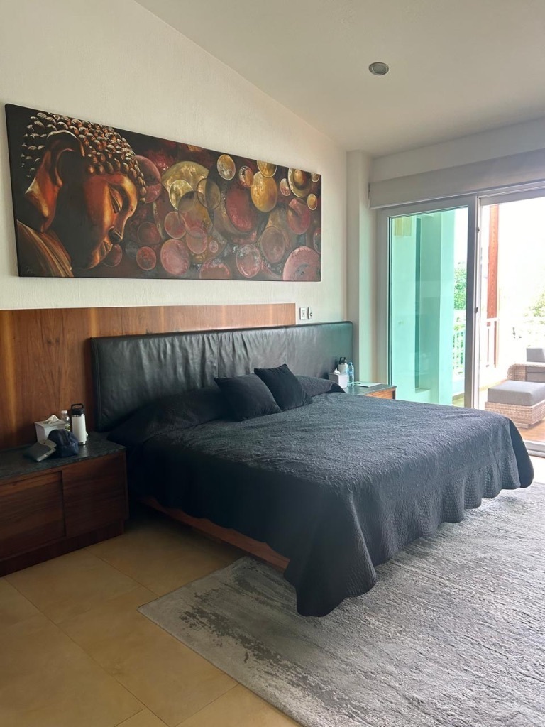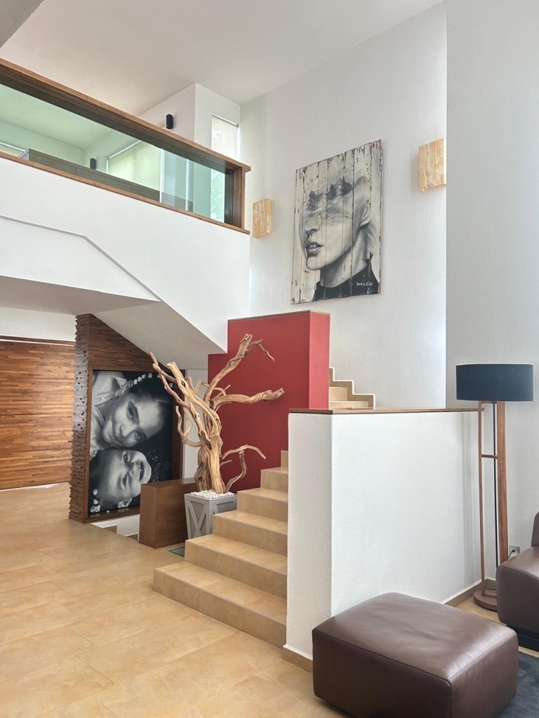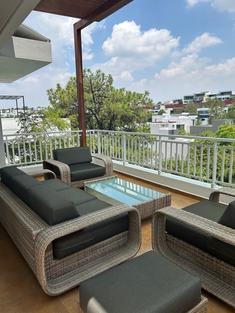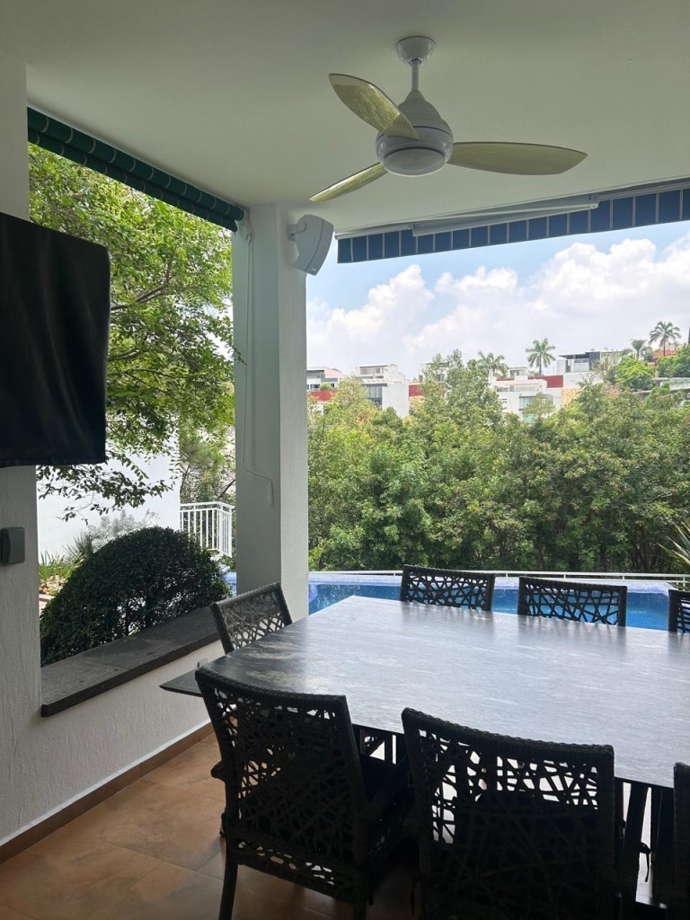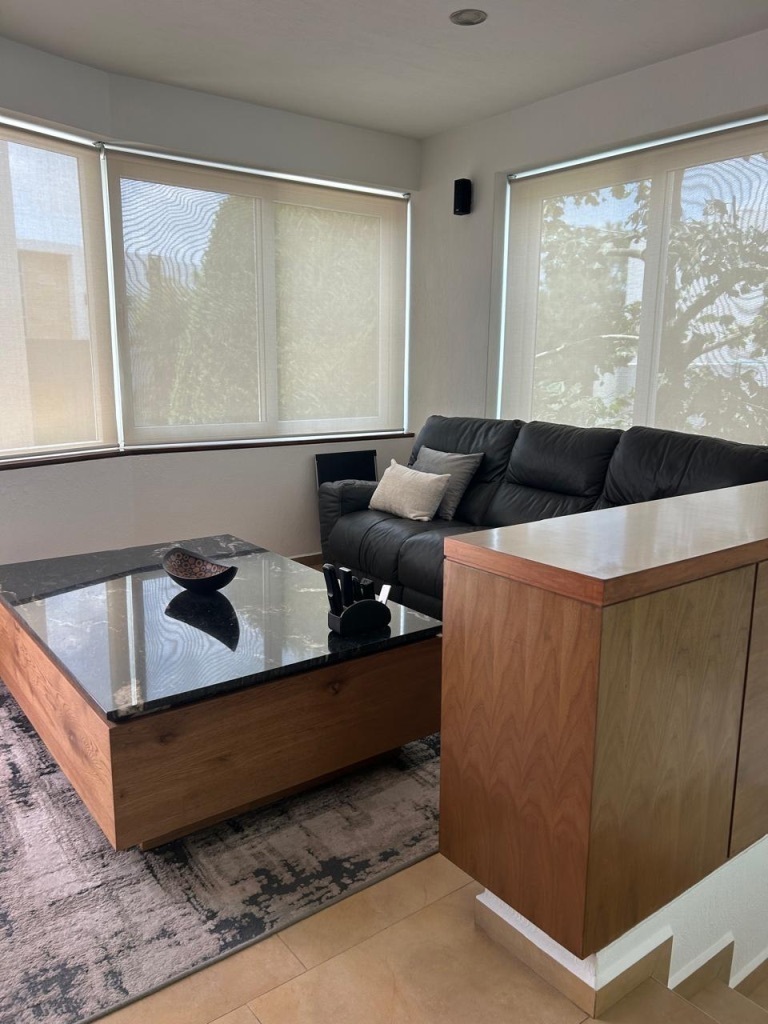 PLANTA ALTA: cuarto de televisión, recámara principal amplia con vestidor y baño completo. Terraza amplia en recámara principal con vista a la cañada y con espacio para muebles y sillones, con techo extraíble electrico de tela. 2 recámaras secundarias cada una con clóset y baño completo, una de ellas con balcón. Closet amplio de blancos