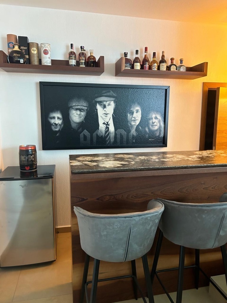 SOTANO: cuarto de televisión y estudio con bar y cava, sillones especiales de piel para cine de la marca Tutto Pele .