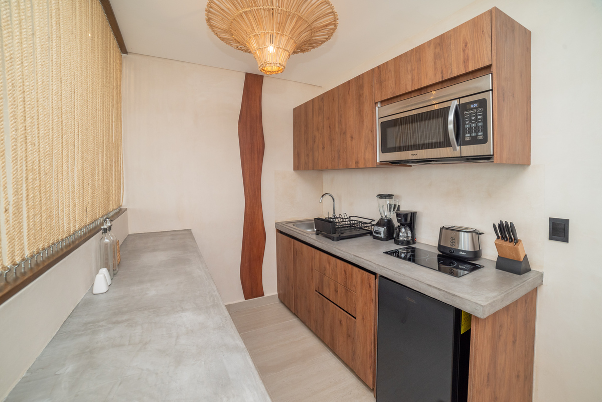 Este espacio combina comodidad, estilo y funcionalidad, ofreciendo un ambiente acogedor ideal para disfrutar estancias largas o escapadas especiales. Cada habitación cuenta con jacuzzi privado, la cocina está completamente equipada y el diseño invita a sentirte como en casa mientras conectas con la esencia de Tulum.