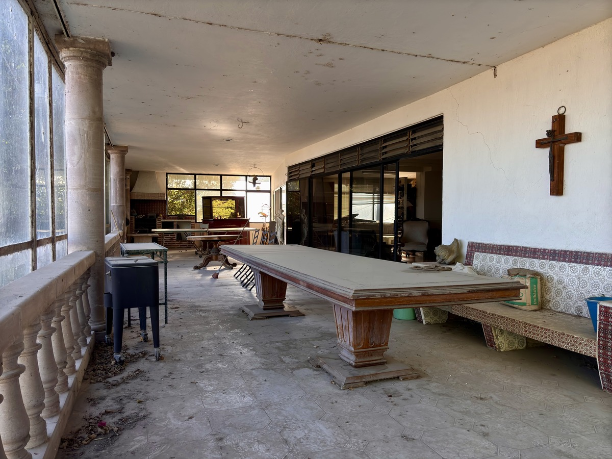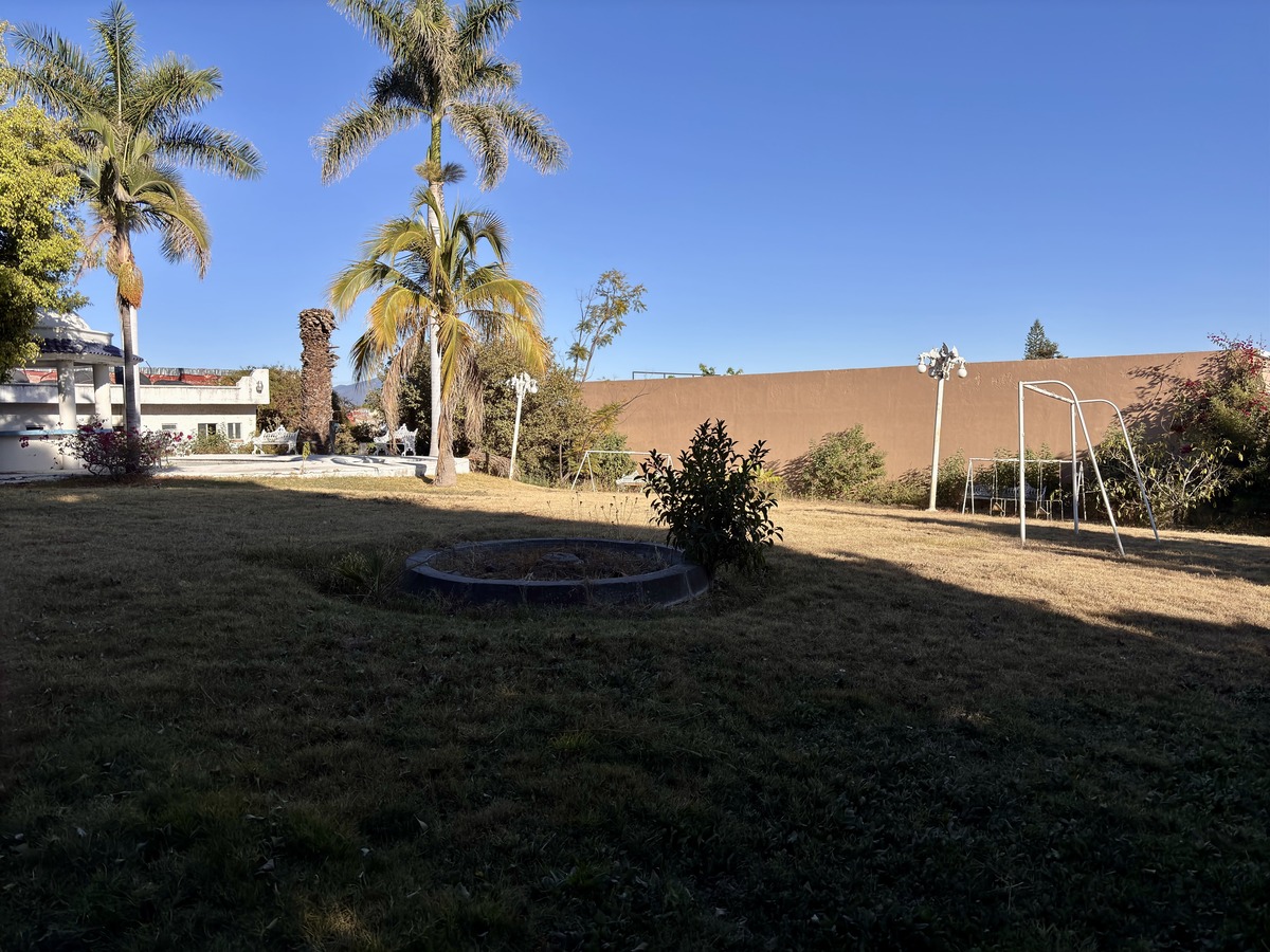Actualmente la construcción cuenta con casa principal de 3 habitaciones, sala, comedor y cocina, además de una terraza para reuniones, colindando con el jardín, alberca y barra.