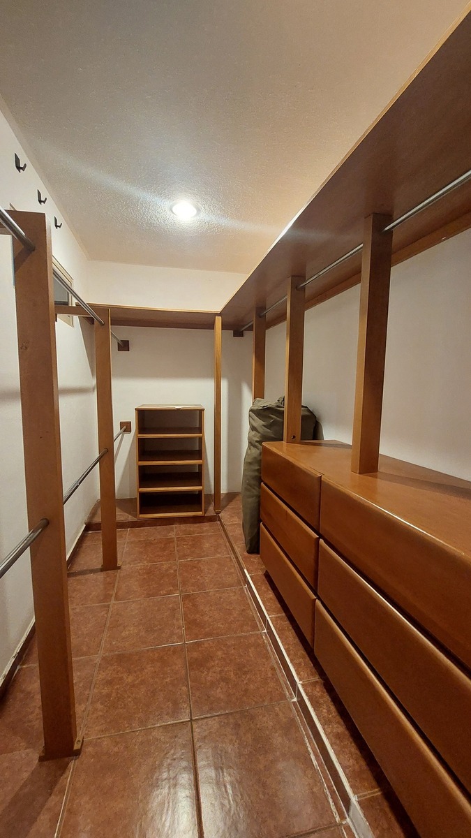 1 recámara con baño completo dentro y clóset tipo pasillo.
