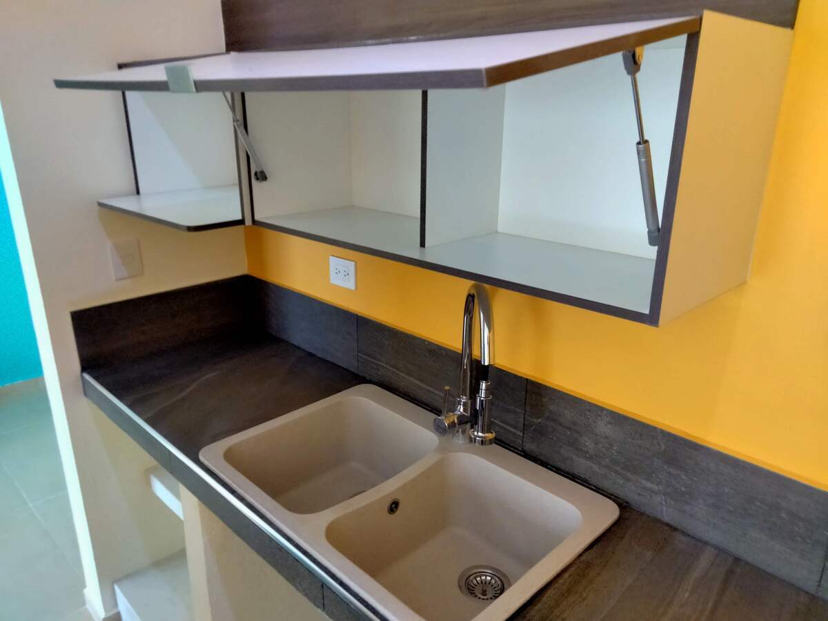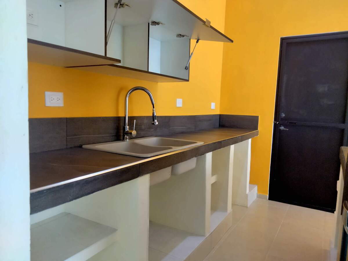 -Cocina ventida con gavetas inferiores y superiores, acceso al pasillo lateral