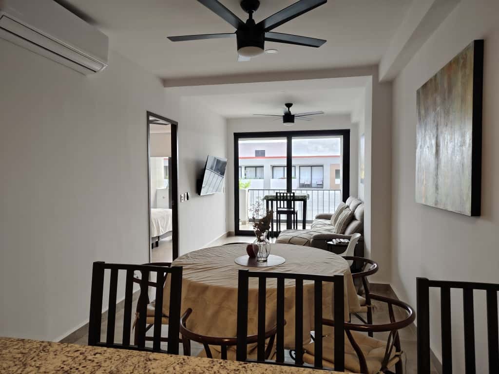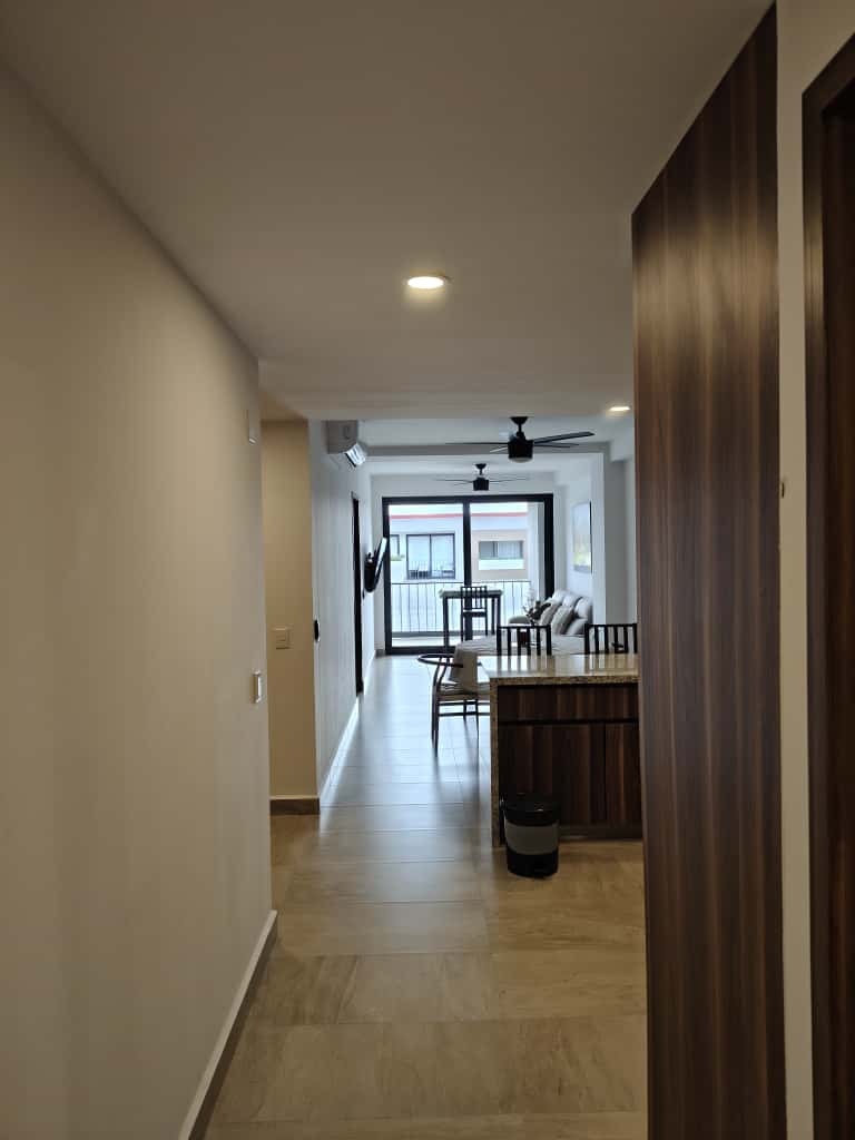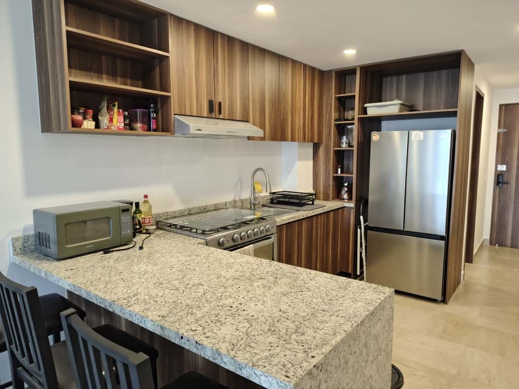Excelente departamento de 100 m con 2 habitaciones, 2 baños, completamente amueblado, aires acondicionados, ubicado en segundo nivel y con un espacio de estacionamiento techado.