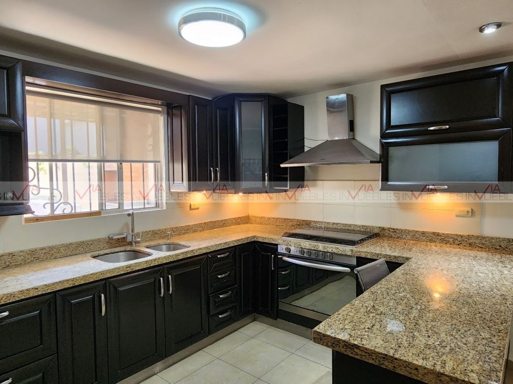 Planta baja con recibidor, sala, comedor con cocina, cuenta con estufa y campana, medio baño, lavandería techada con boiler y patio amplio con asador y con estructura de techo moderno, cochera para un auto con portón eléctrico.