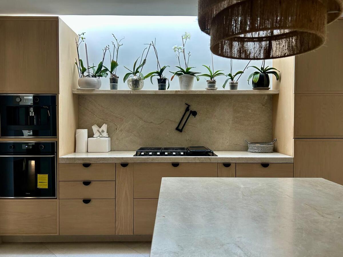 Casa en cerrada de 52 residencias, desarrollada en dos niveles, totalmente remodelada y amueblada. En planta baja cuenta con techos de doble altura, vigas de madera, iluminación automatizada y pisos de mármol en sala, comedor y bar con salida a patio, mediante ventanales de piso a techo. La cocina está equipada e incluye barra para comer. En este nivel se ubican también un family room y un área de estudio.