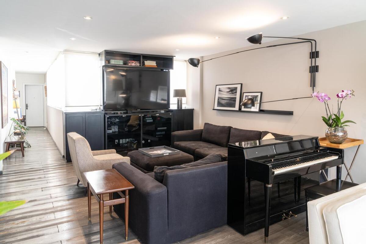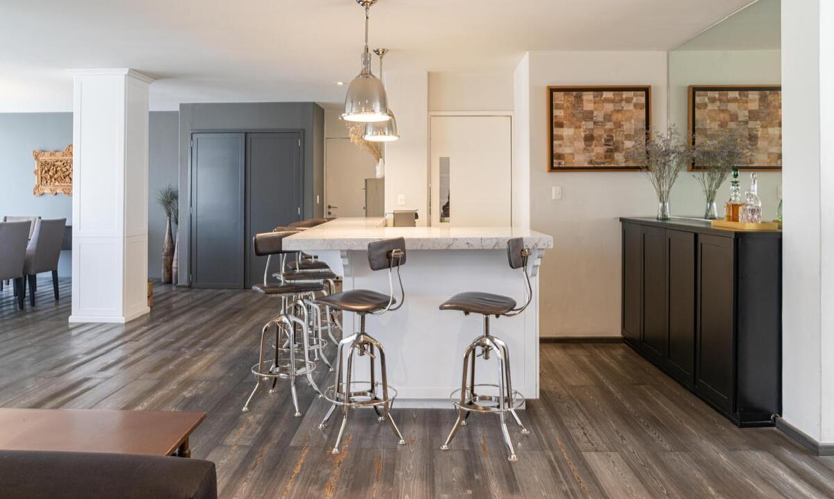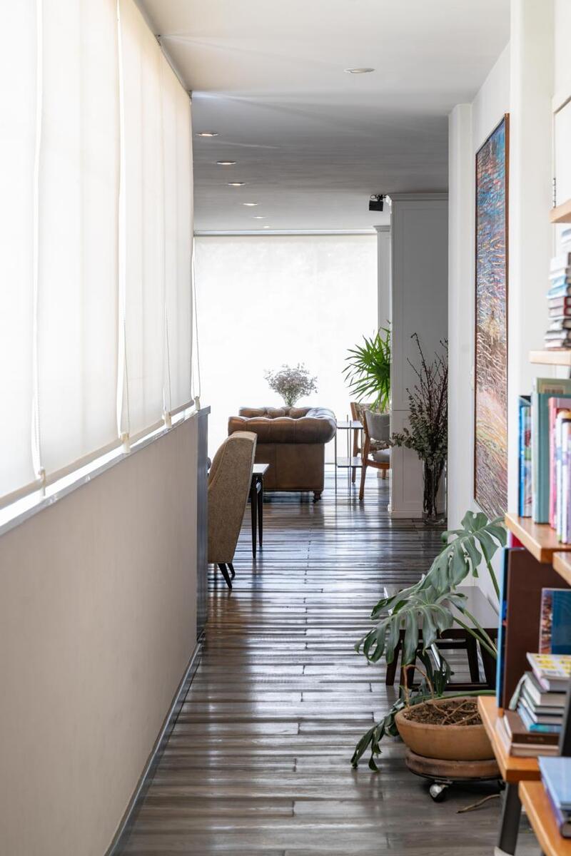 Sala y comedor con balcón a lo largo y mucha luz