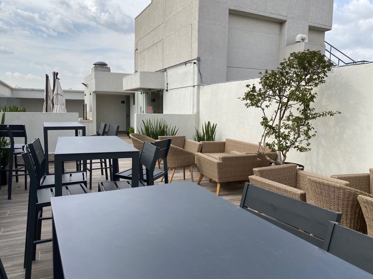 Amenidades y servicios: Canchas multiusos, alberca, jacuzzi, gimnasio, salón de usos múltiples, roof garden.