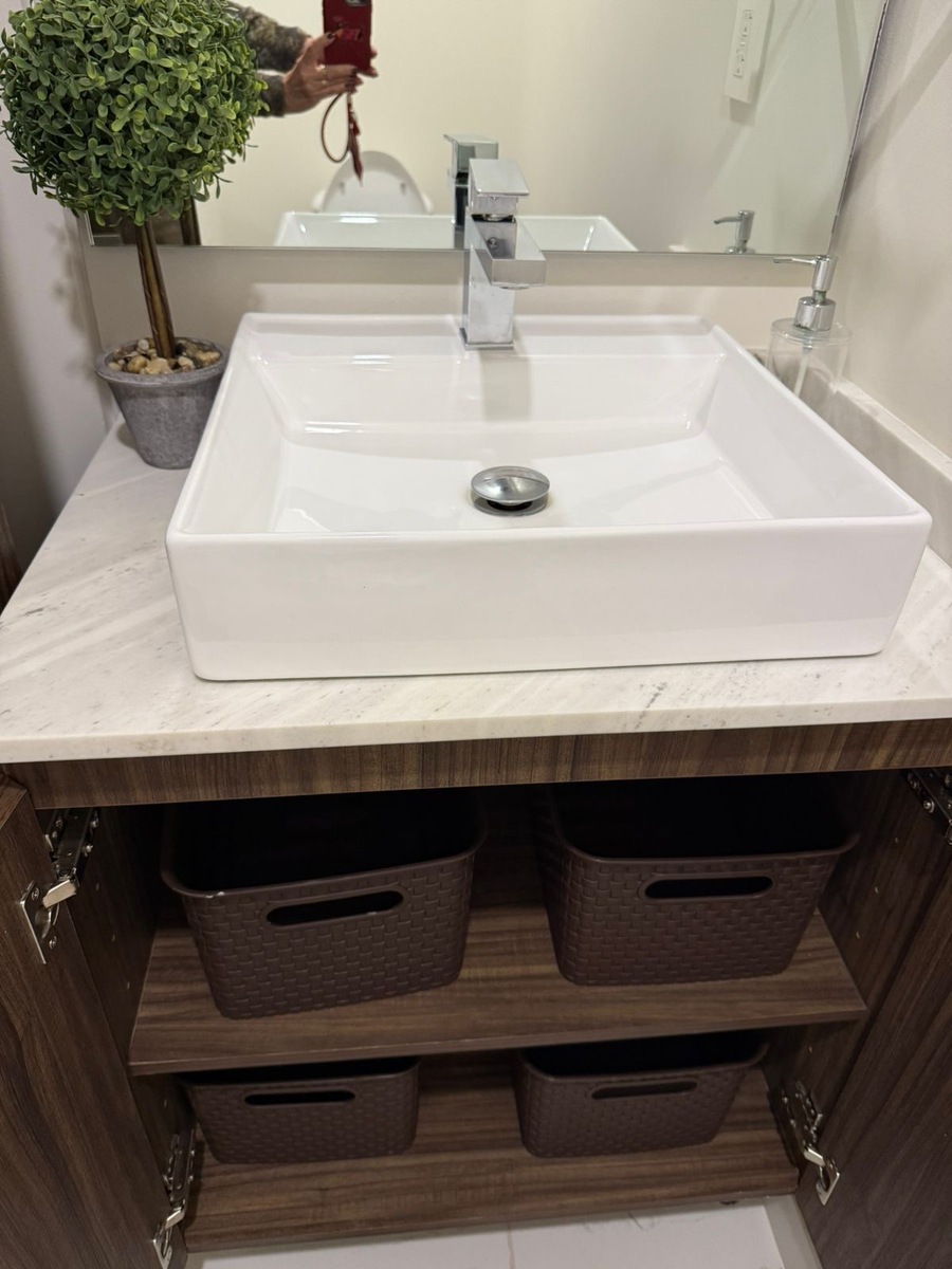 1 recámara con vestidor y baño completo de muy buen tamaño .