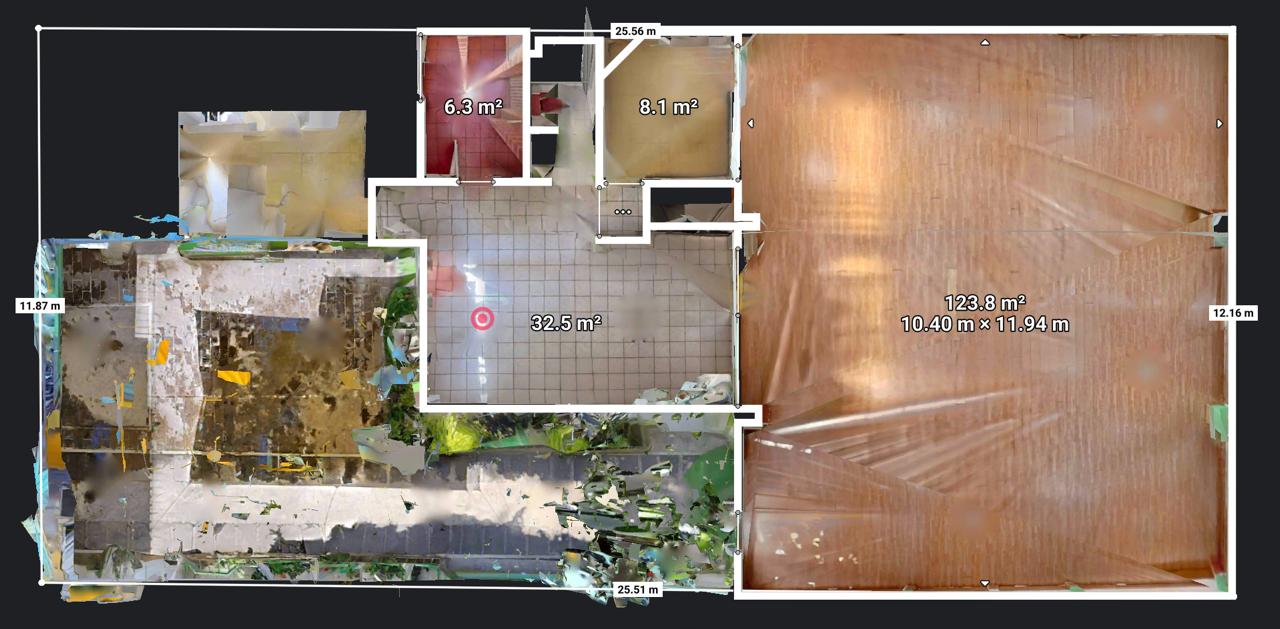-12 m2 de frente por 25 m2 de fondo.
