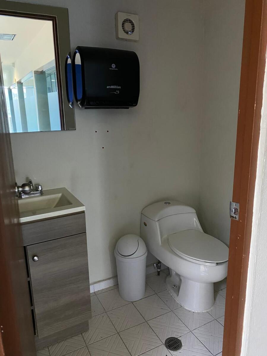 El espacio cuenta con área de recepción, 4 privados de los cuales uno es grande y los otros 3 son más chicos, área abierta de trabajo, 2 baños de los cuales uno es para clientes y el otro para empleados.