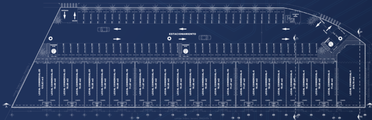 Plaza comercial con 25 locales y 69 lugares de estacionamiento.