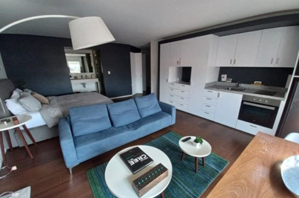 El espacio está distribuido en un solo ambiente e incluye cocineta y baño integrado. Desde el interior se tiene vista a la ciudad. El inmueble forma parte de un condominio y dispone de un cajón de estacionamiento asignado por unidad.