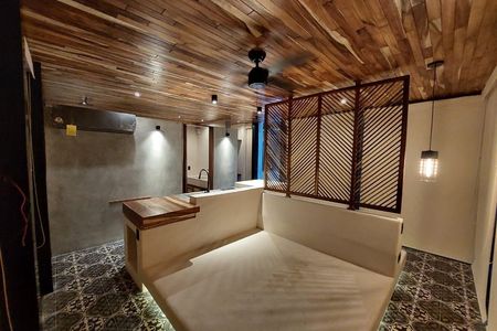 Exclusivo Loft en desarrollo Aflora Tulum, acabados de lujo con pisos y paredes de Chucum (acabado natural heredado por los Mayas) Totalmente Amueblado y eléctrico, cuenta con iluminación de cortesía, aire acondicionado, cocina integral de alta gama, ideal para disfrutar momentos gastronómicos con familiares y amigos. Terraza privada con vista panorámica a la selva.