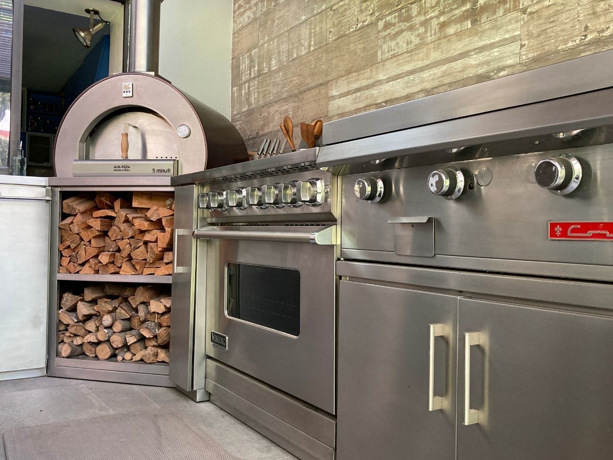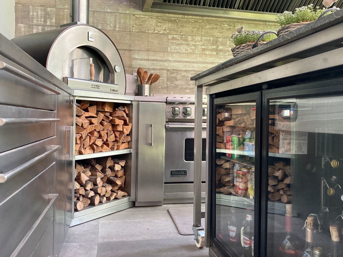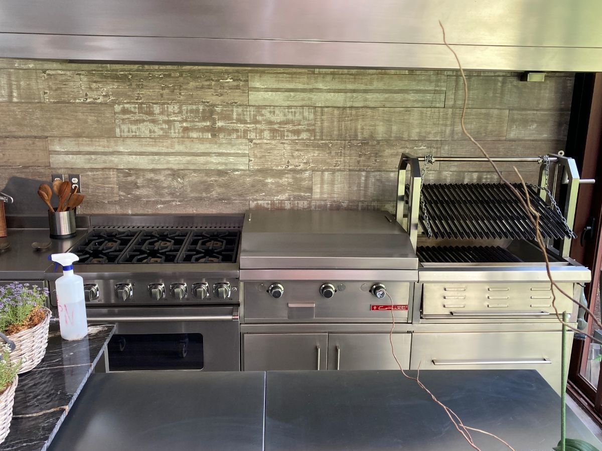 Esta segunda cocina con gran isla, horno de pizzas y además el normal Viking, parrilla etc.