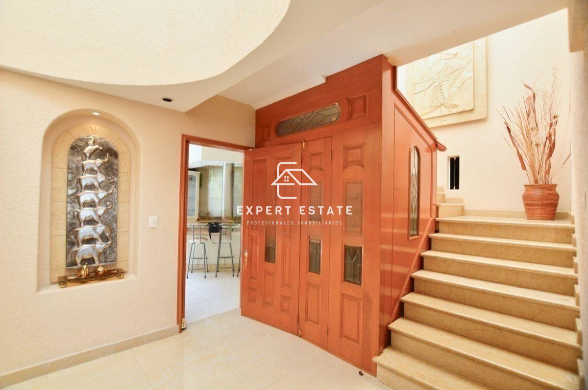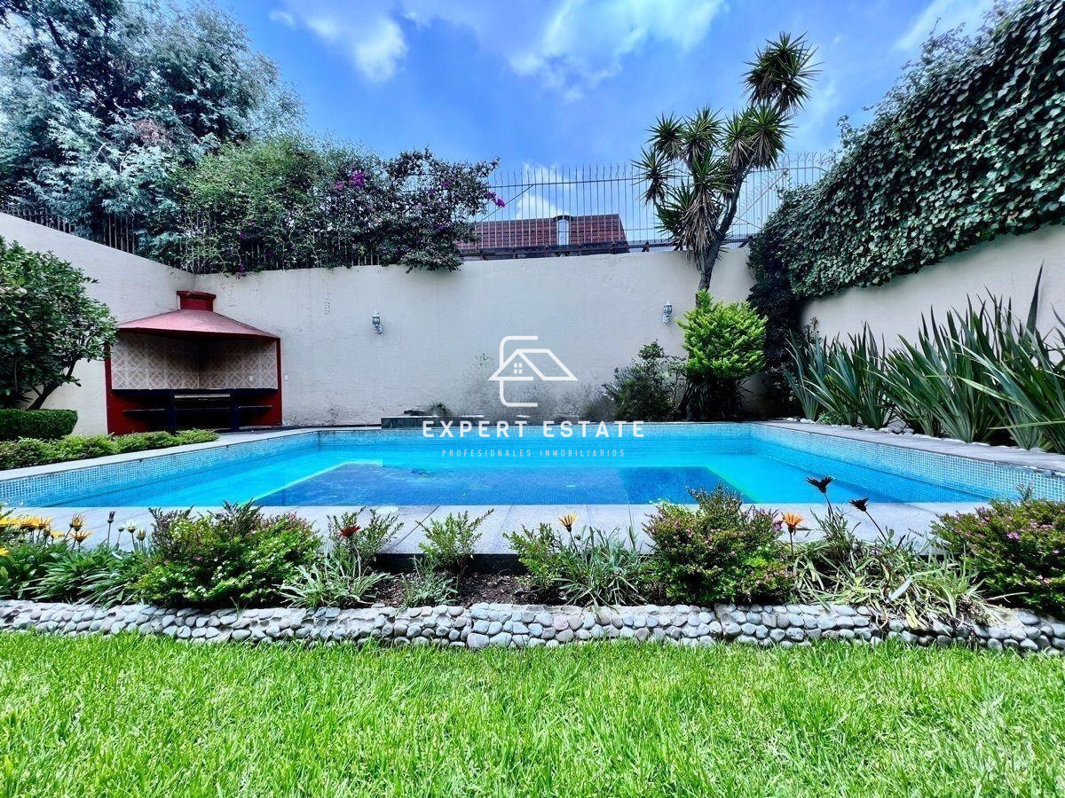 Update this beautiful, spacious and exclusive home and live in style! 536 m2 construction, 3 story house, within a quiet and safe gated community in Interlomas (Lomas de las Palmas). It consists of generous living/dining room overlooking a beautiful garden with pool and barbecue. A large dome provides great luminosity and harmony to the whole house. It has a practical equipped kitchen with breakfast and 4 comfortable bedrooms, 3 of them with dressing room and integrated bathroom, plus another one for visitors with bathroom in the ground floor; the main bathroom with jacuzzi tub. It has a family room, small office and gym, as well as a service room with full bathroom, laundry room and storage room. Practical and spacious service areas and covered garage for 4 large cars or 6 small ones. Call 552 690 1748 to make an appointment, you'll love it.