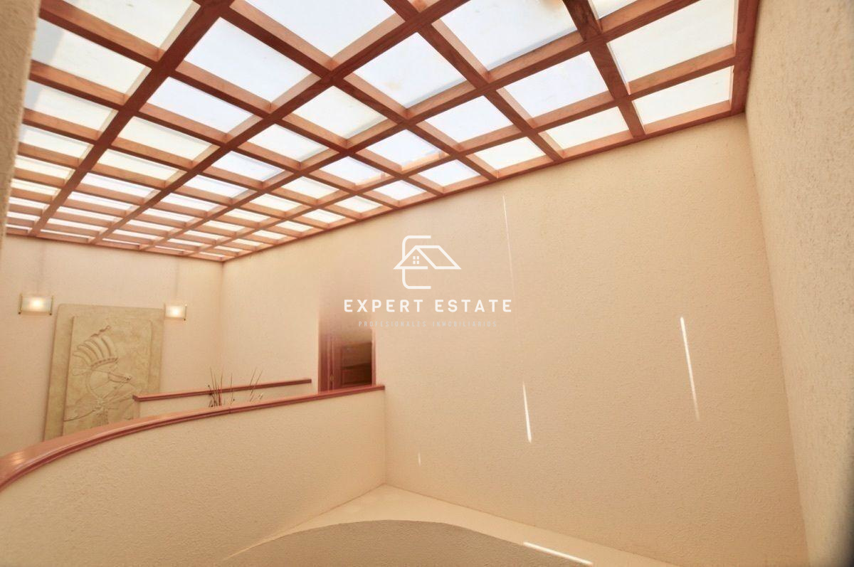 Actualiza esta preciosa, amplia y exclusiva casa y vive con estilo! Casa de 536 m2 de construcción, desarrollada en 3 niveles, dentro de una tranquila y segura privada en Interlomas (Lomas de las Palmas). Consta de generosa estancia con sala y comedor, con vista a un hermoso jardín con alberca, fuente y asador. Un gran domo proporciona excelente luminosidad y armonía a toda la casa. Cuenta con práctica cocina integral equipada con antecomedor y 4 cómodas recámaras, 3 de ellas con vestidor y baño integrado, más otra de visitas con baño completo en la planta baja; el baño principal con tina de hidromasaje. Tiene sala de estar, oficina y gimnasio, así como cuarto de servicio con baño completo, cuarto de lavado, bodega y cava. Prácticas y espaciosas áreas de servicio y garage techado para 4 automóviles grandes o 6 pequeños. Haz una cita al 552 690 1748 y vamos a verla, te encantará.