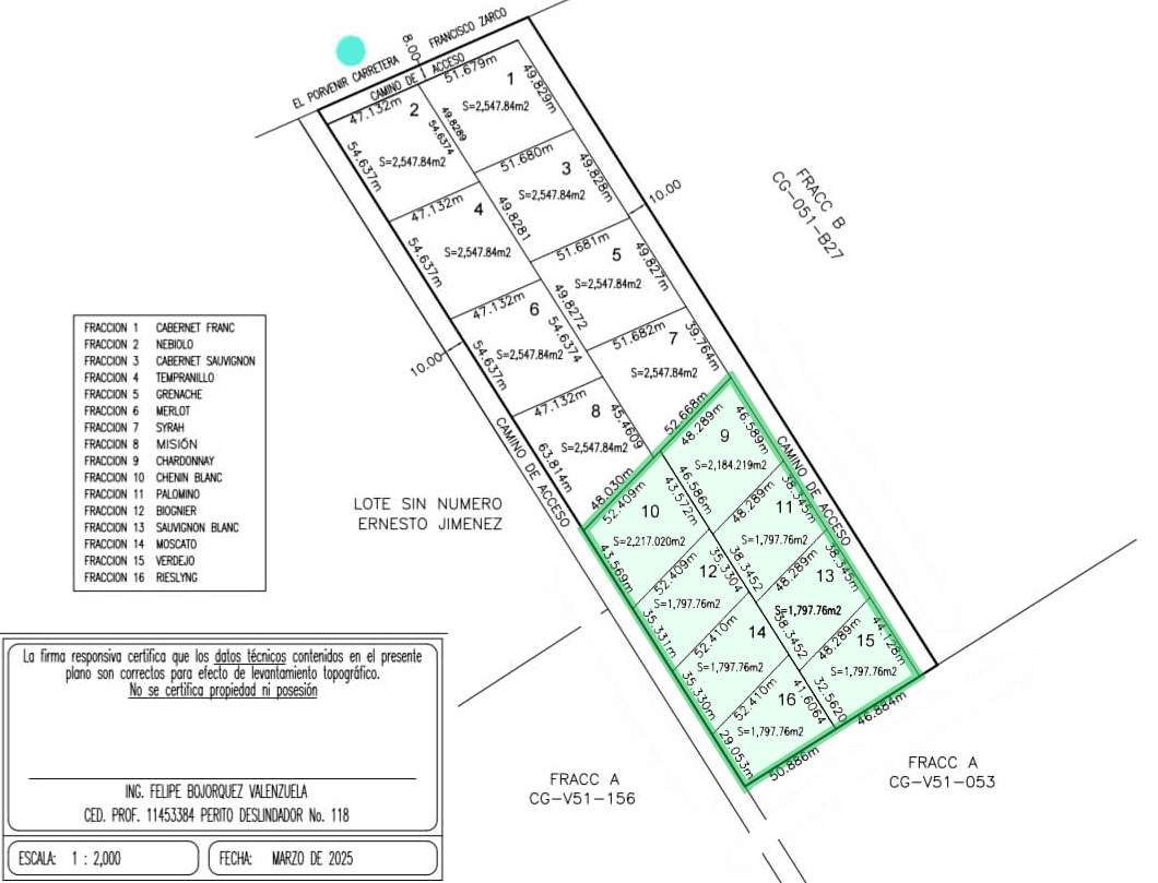 • Lotes ubicados en Francisco Zarco, Valle de Guadalupe