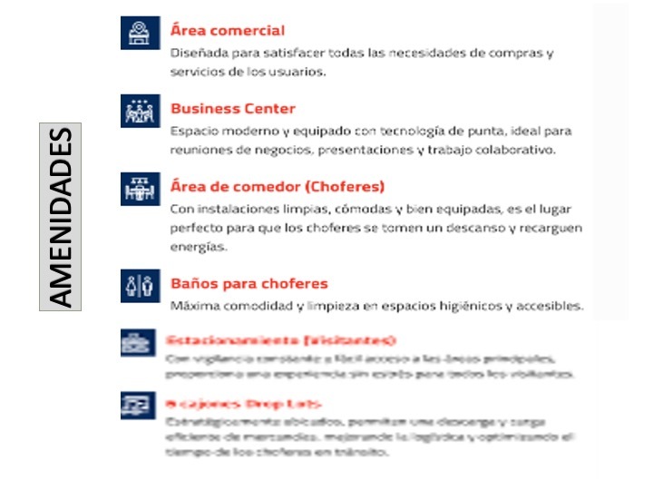 Estratégicamente ubicados, permiten una descarga y carga eficiente de mercancías, mejorando la logística y optimizando el tiempo de los choferes en tránsito.