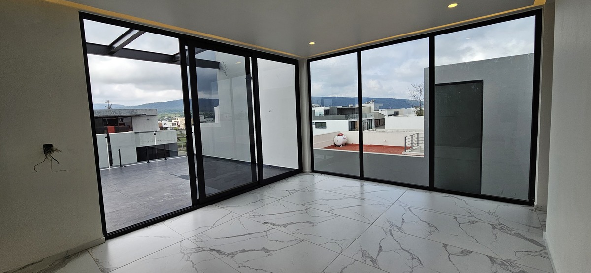 Hermosa casa dentro de coto Cedro en Parques Vallarta, 5 habitaciones 5 baños cochera para 3 autos, estilo moderno, acabados con materiales de primera y equipamiento de lujo estufa TEKA por poner un ejemplo, carpintería en parota, cocina con Cava y enfriador de vinos marca TEKA, encimera de granito y vistoso jardín, enormes ventanales de piso a techo, techos a 3m de altura.