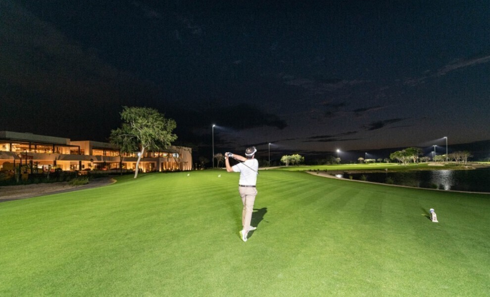 -Campo de golf 9 hoyos Par 3 con iluminación nocturna.