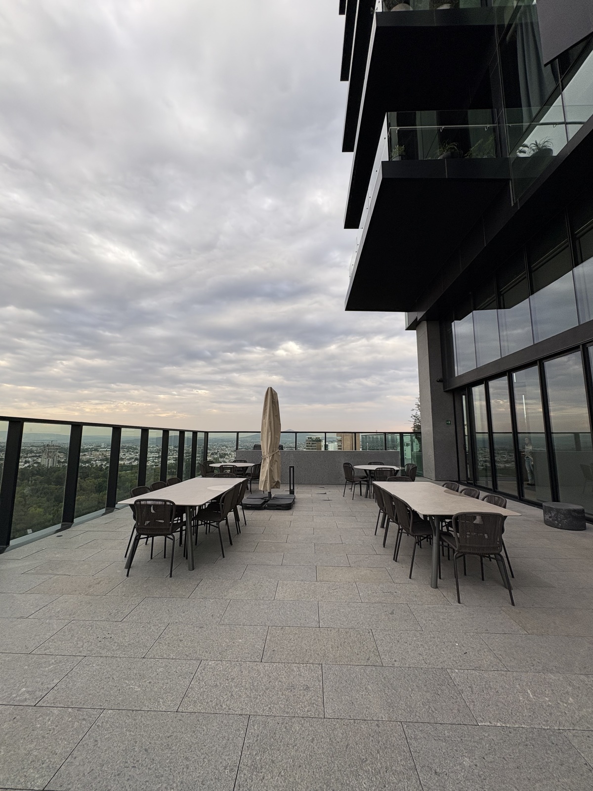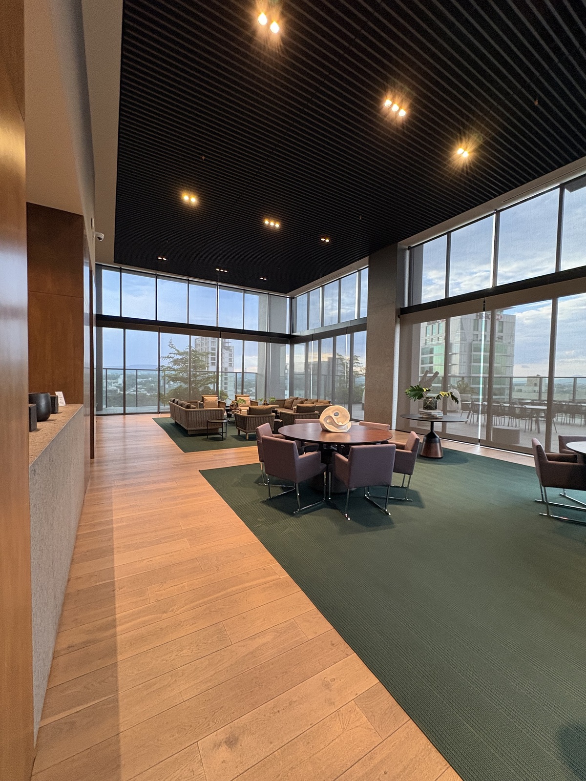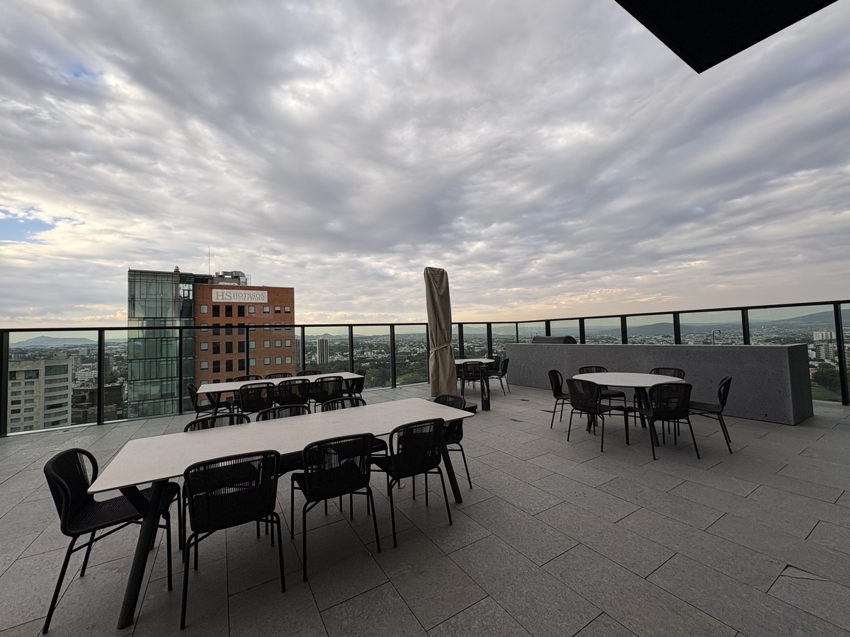 En el piso 15 cuenta con terraza perimetral , alberca de 25 metros, asoleaderos, baños para zona húmeda con vapor para mujeres y hombres, salón familiar con cocineta y salón para eventos, salón de yoga, masaje y gimnasio con terraza con vista a Avenida Américas.
