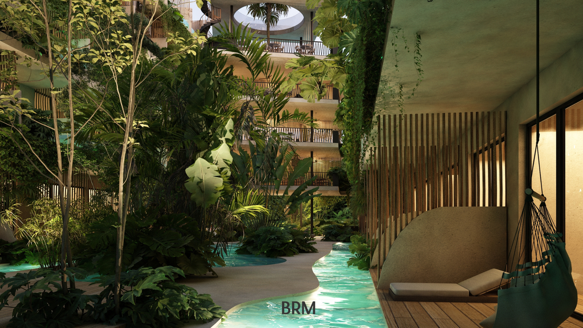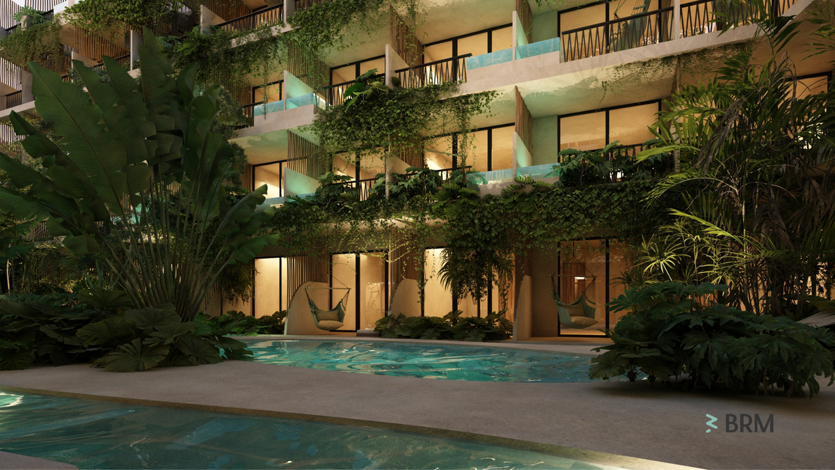 Dearrollo chic residencial de departamentos condo hoteleros. El proyecto propone un estilo de vida del más alto nivel, sin perder la vibra mágica de la naturaleza y transporte a un estado de paz interior.