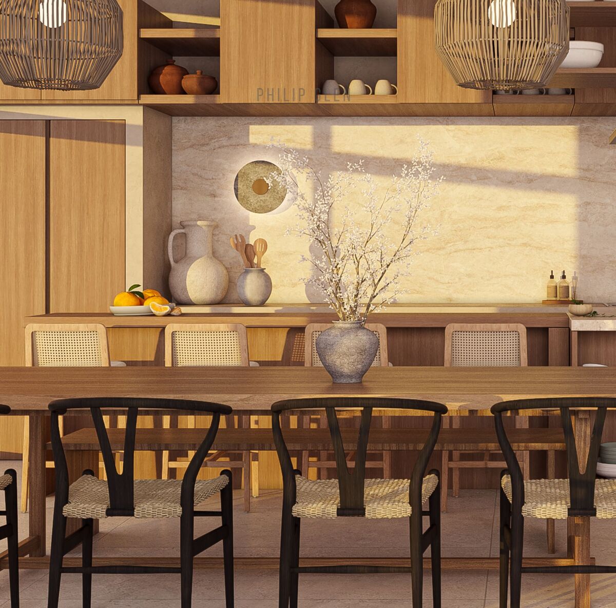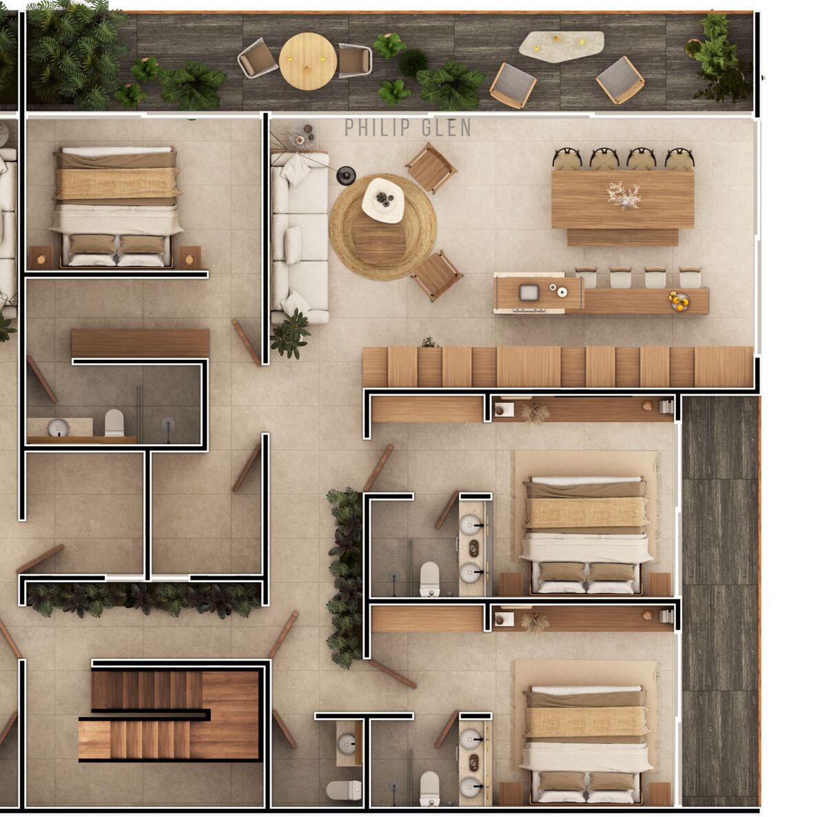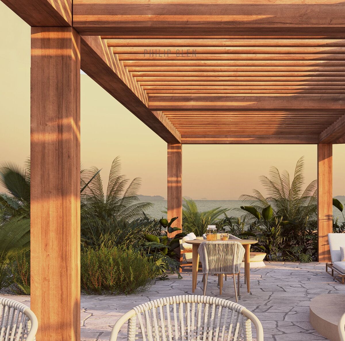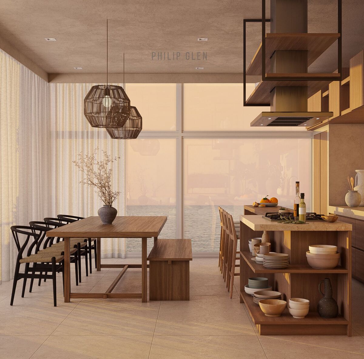 El proyecto enfatiza la comodidad y el estilo, con espacios de vida de planta abierta que invitan a la luz natural y suaves brisas marinas.