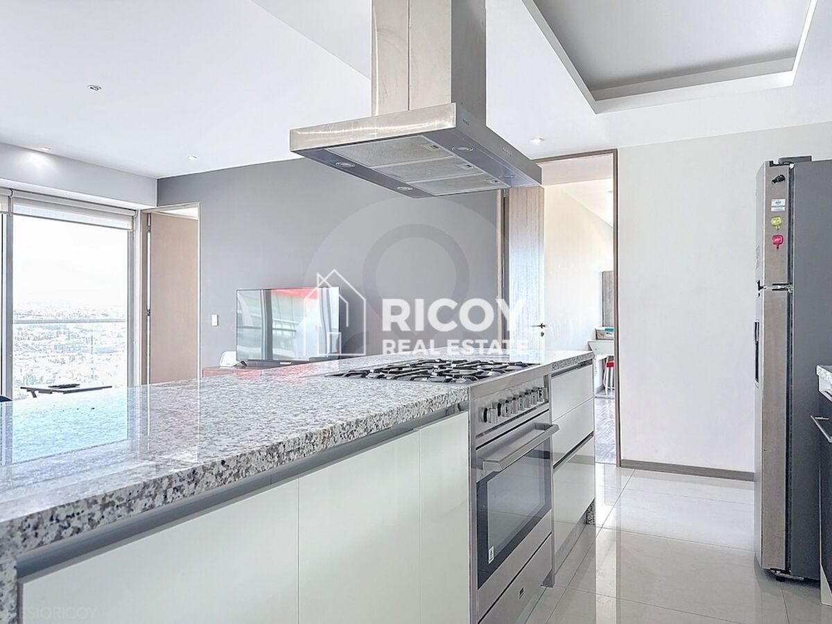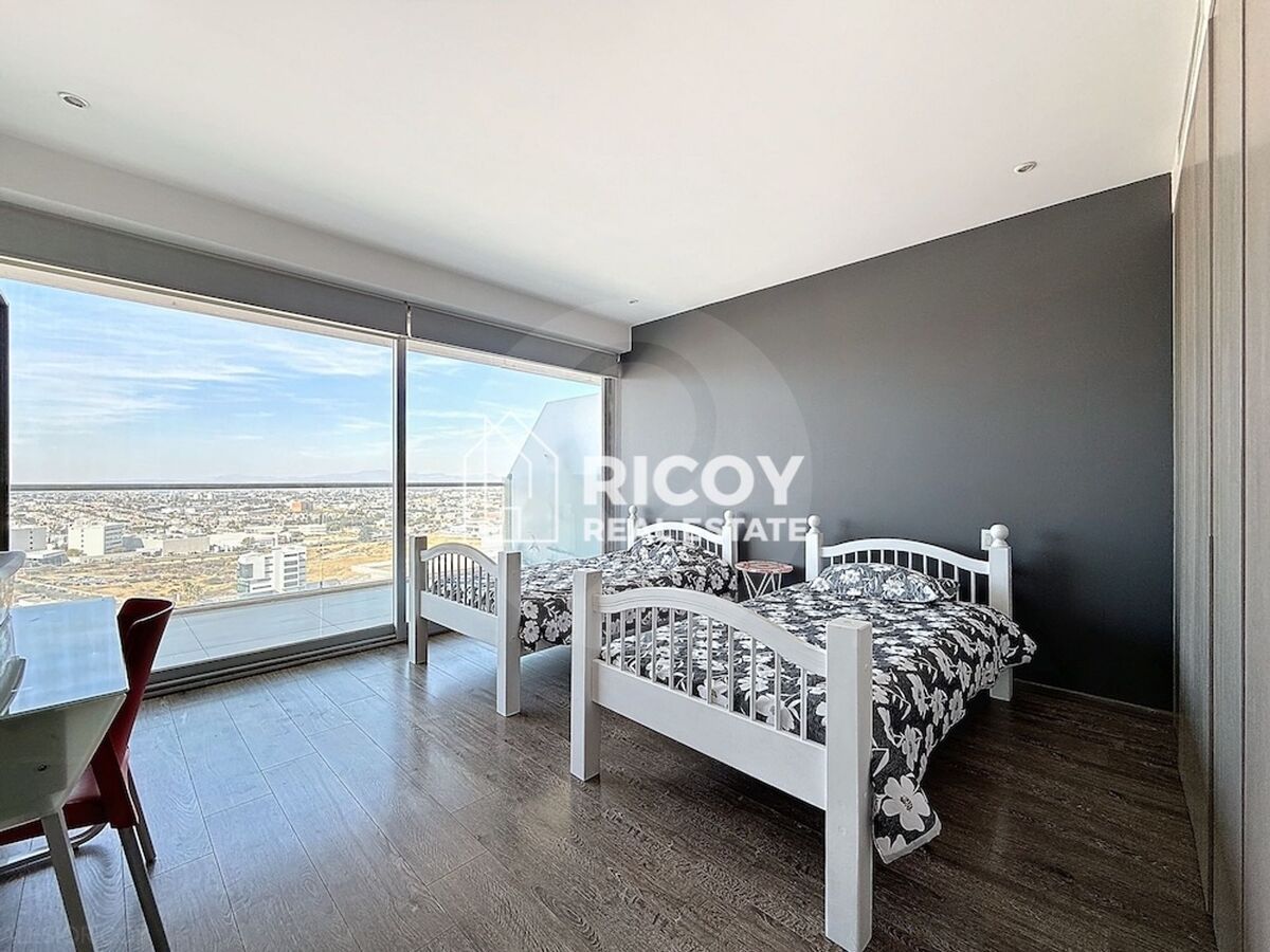 Espectacular departamento amueblado en esquina del piso 12 en Central Park, uno de los conjuntos mejor ubicados y con mejores amenidades de todo Querétaro. El departamento cuenta con: