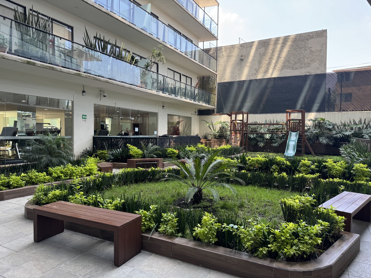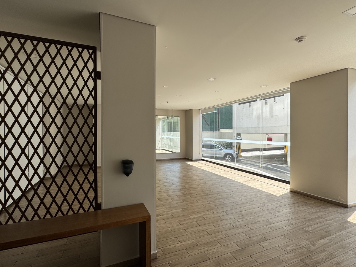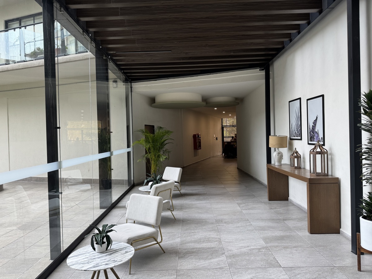 El edificio tiene amenidades: gimnasio, jardín central, salón de usos múltiples.