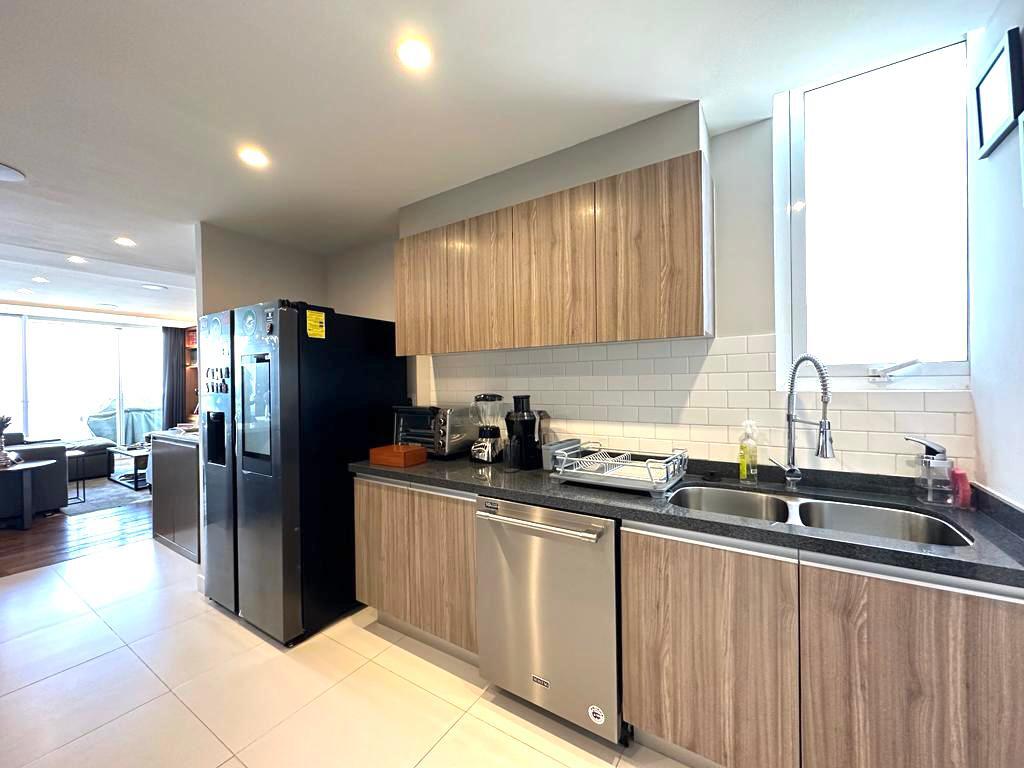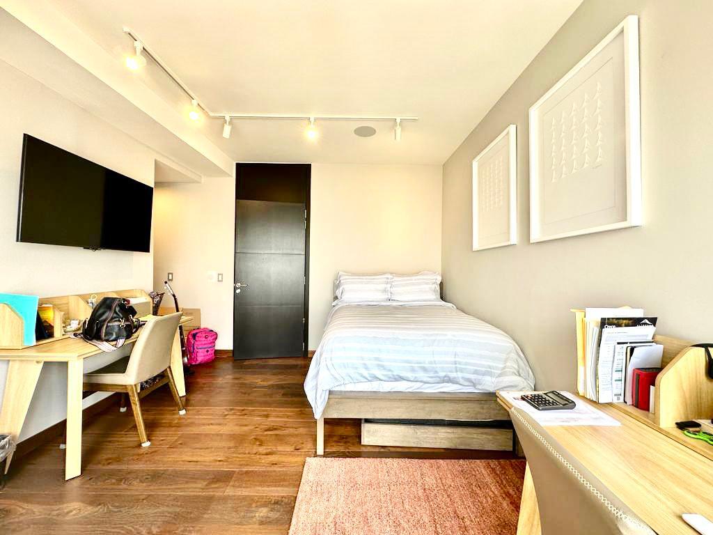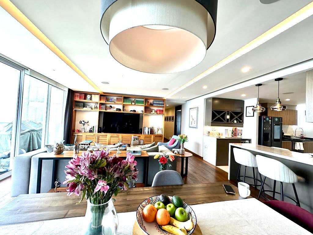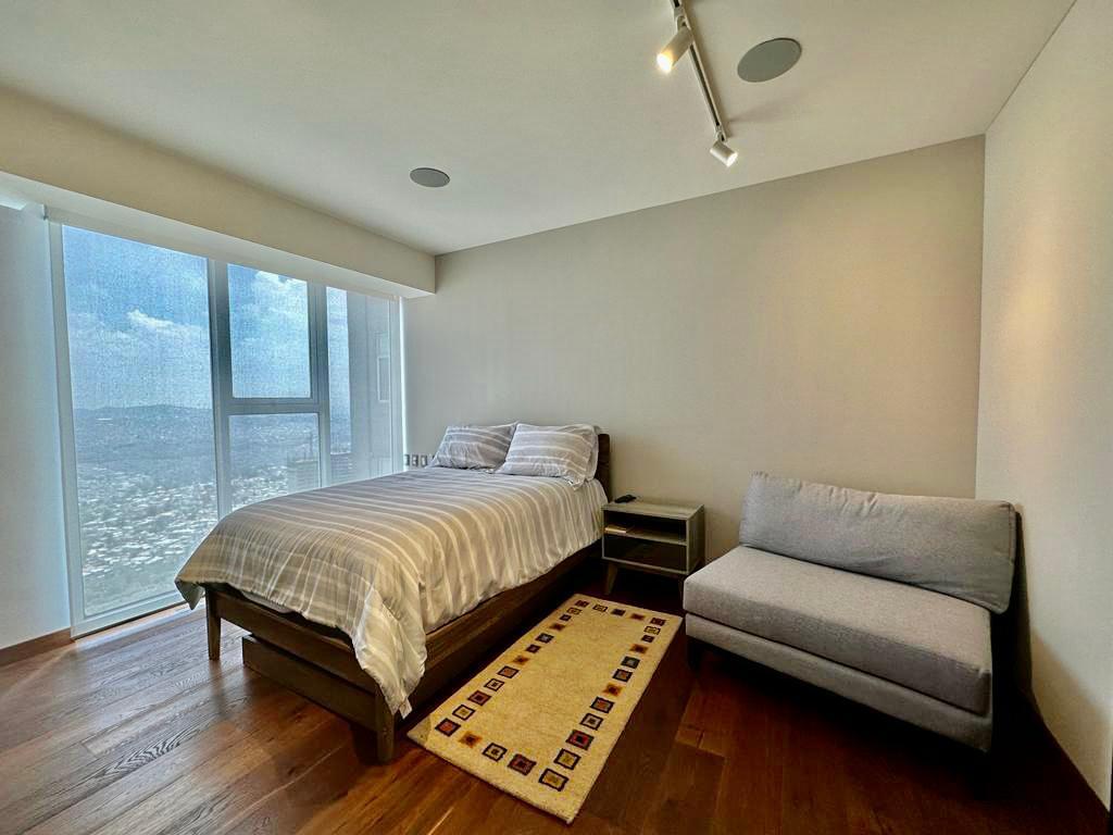 El departamento cuenta con; samplia área social con salida a una terraza e increíble vista panorámica, estudio, family o sala de T.V amplia y agradable cocina integral abierta con desayunador, funcional espacio para alacena, tiene 3 amplias habitaciones con baño completo cada una, la principal con walking closet y las otras dos con closets, medio baño para visitas, cuarto de lavado, cuarto de servicio independiente con baño completo.