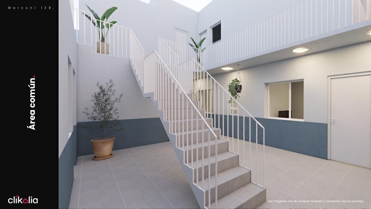 MARCONI 139 es un desarrollo que se encuentra dentro de la colonia Revolución, y consta de 13 departamentos distribuidos en 2 niveles con superficies de 33 a 66 m2.