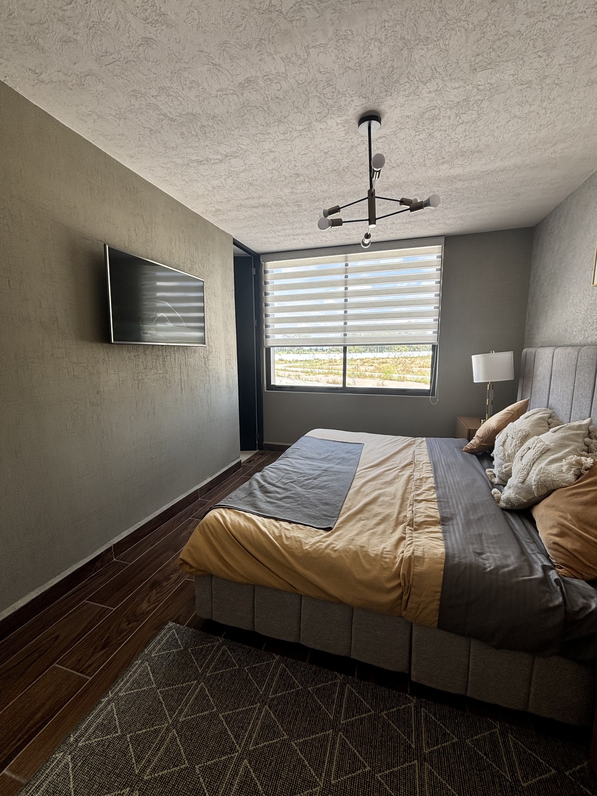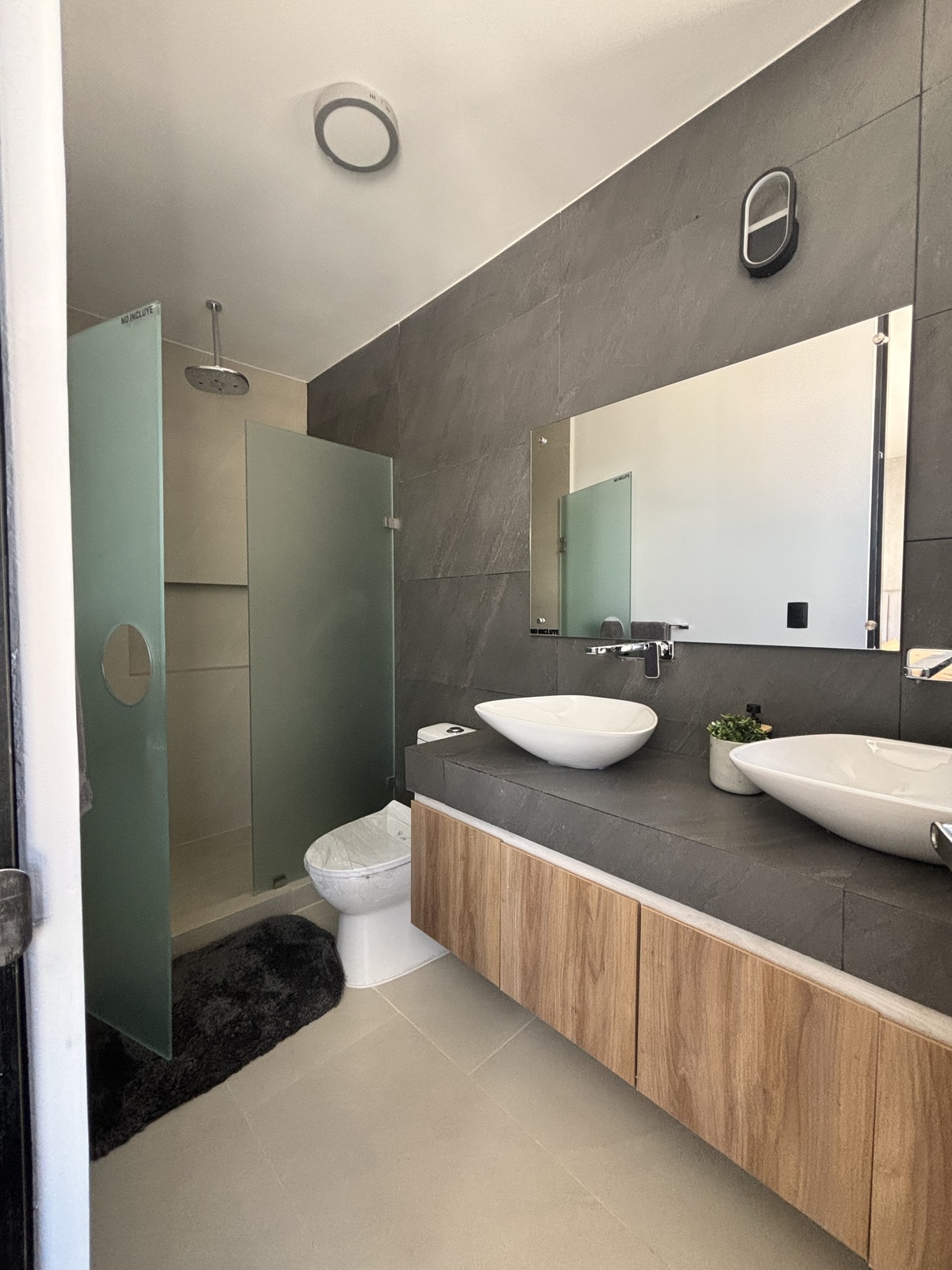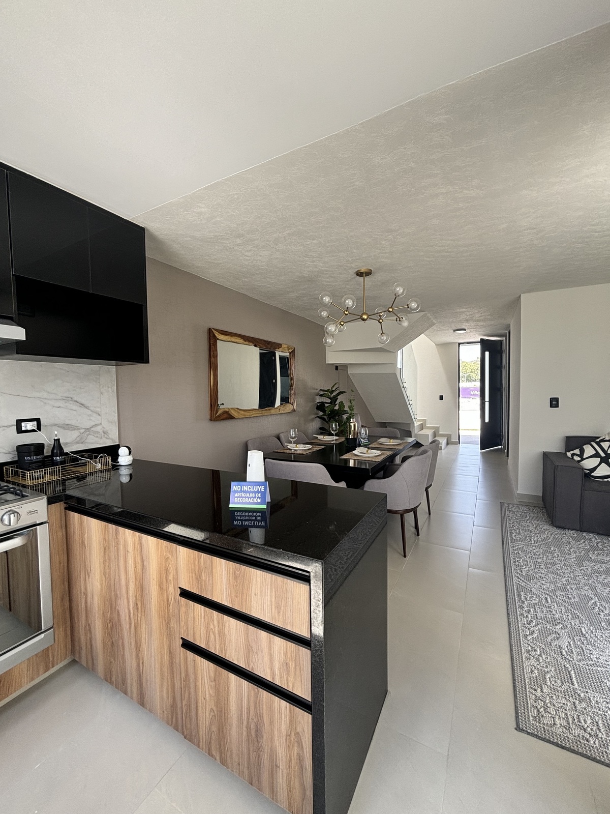 Cisterna, calentador de paso, calentador solar, preparación para tanque estacionario, pisos cerámicos, cocina integral con barra de granito, 2 preparaciones de aire acondicionado, closets.