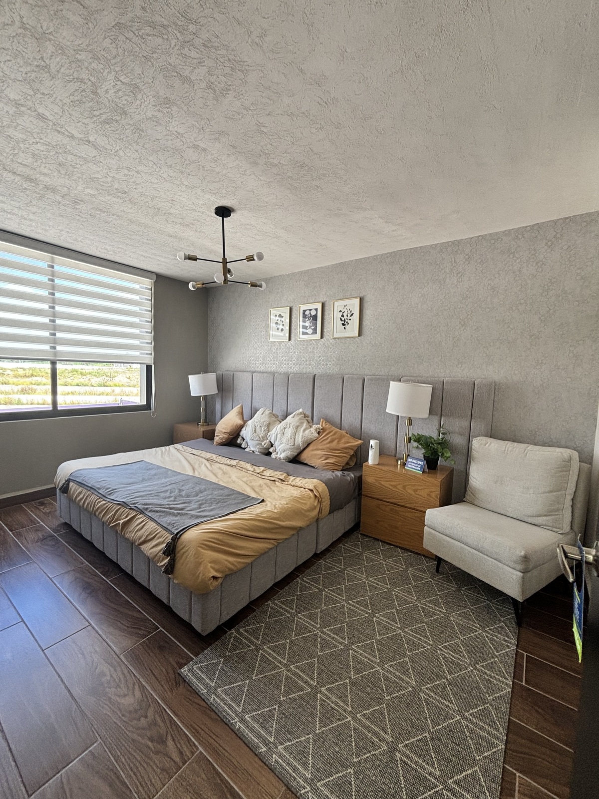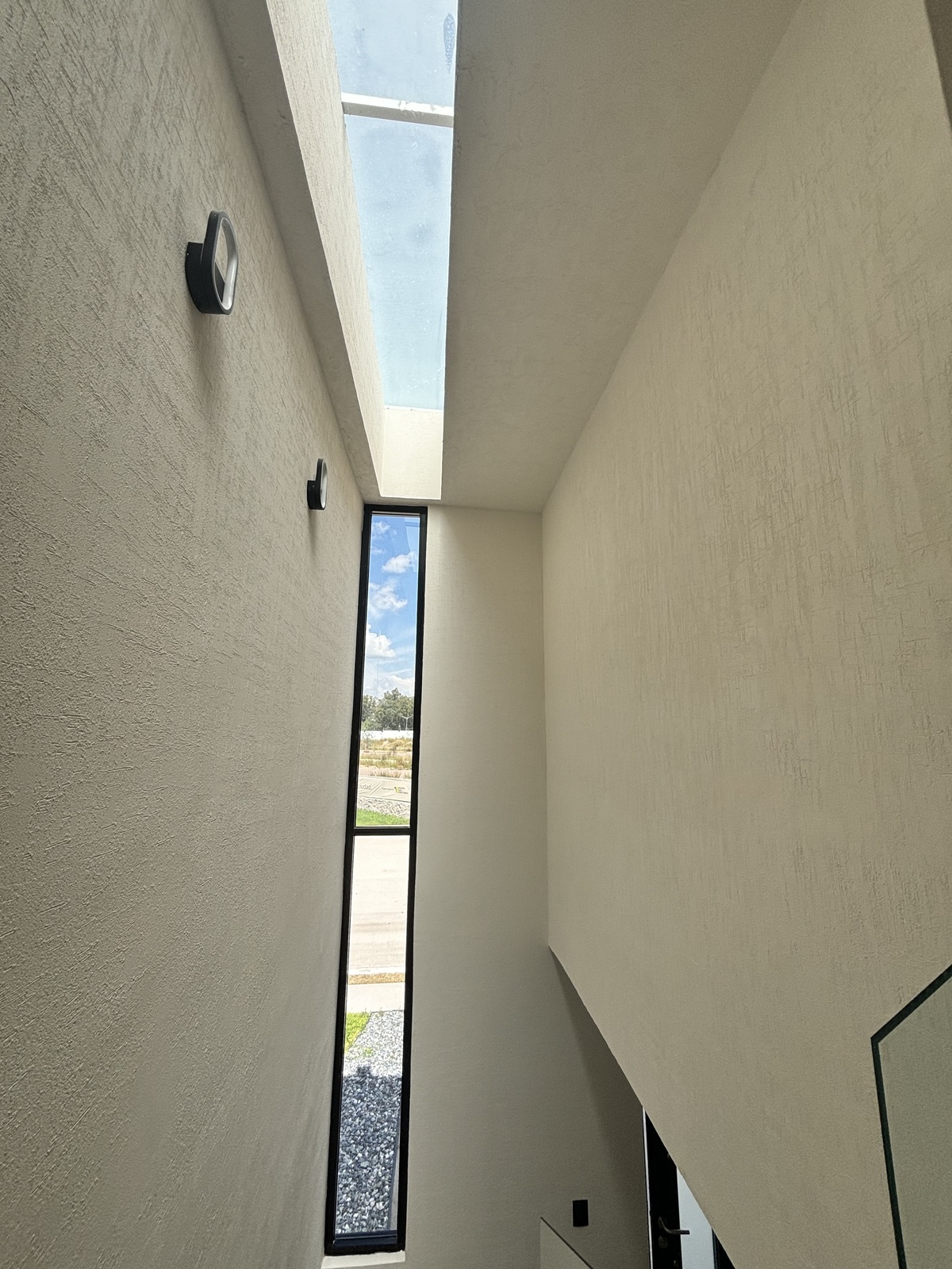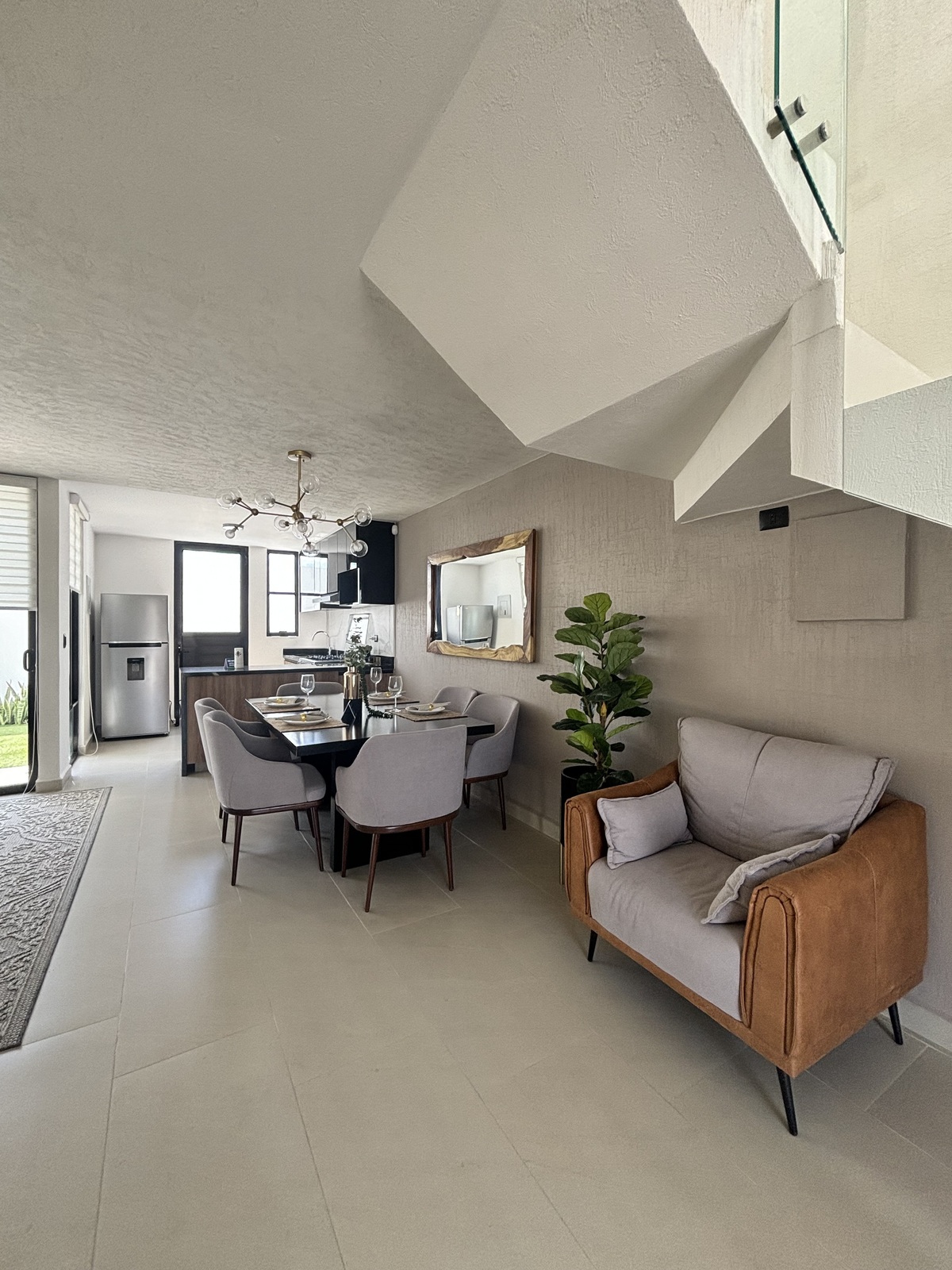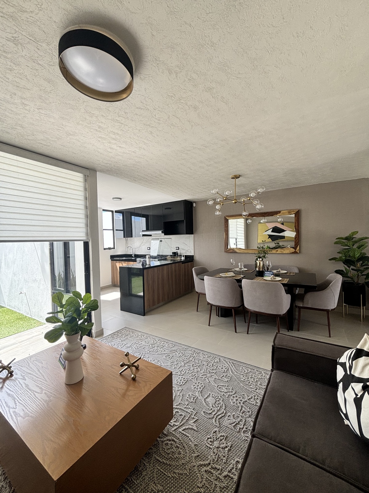 Cisterna, calentador de paso, calentador solar, preparación para tanque estacionario, pisos cerámicos, cocina integral con barra de granito, 2 preparaciones de aire acondicionado, closets.