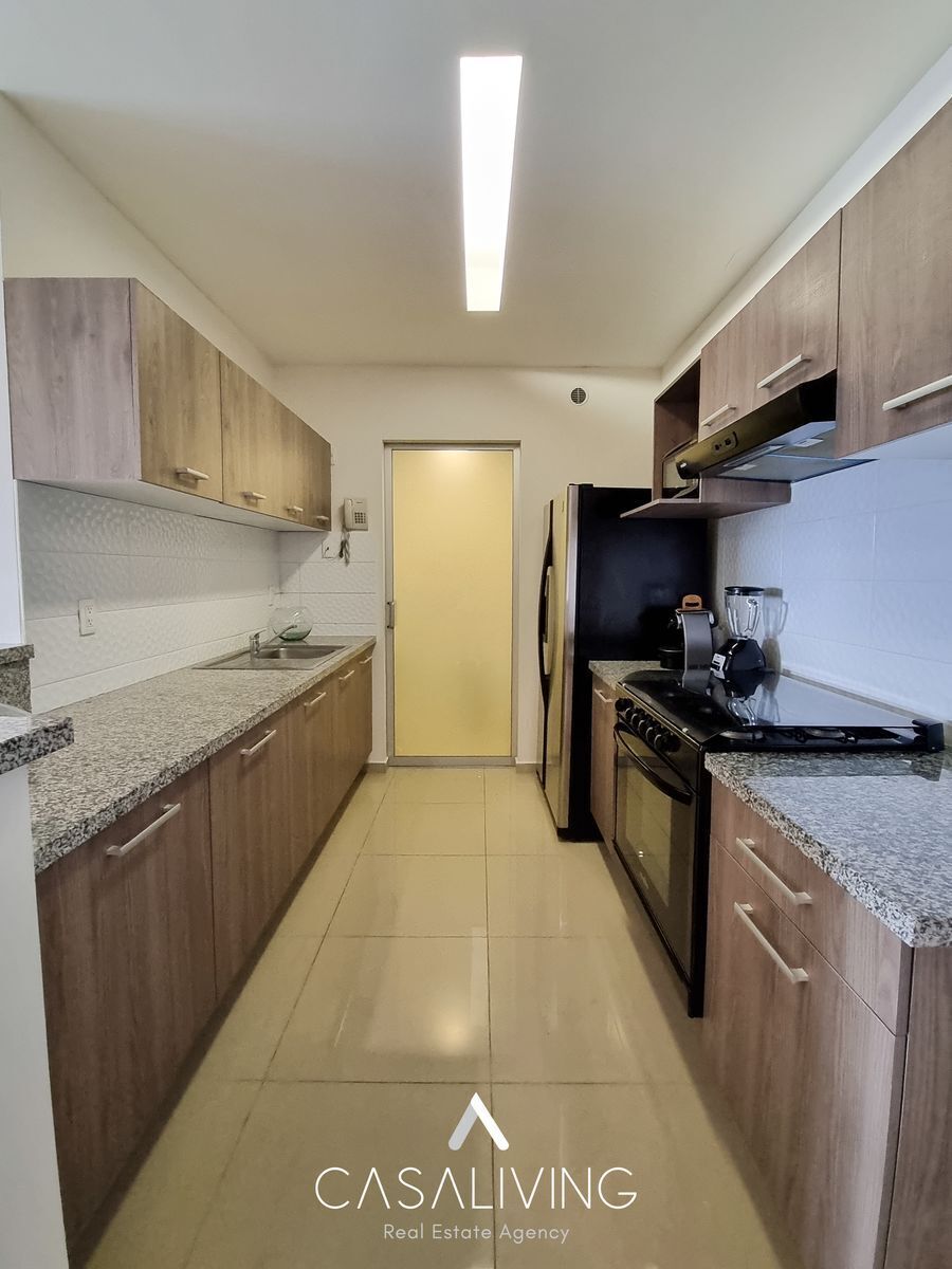 Sala comedor, cocina abierta y área de servicio. Muy iluminado, ubicado en el piso 14. Persianas black out y traslúcida en recámaras.
