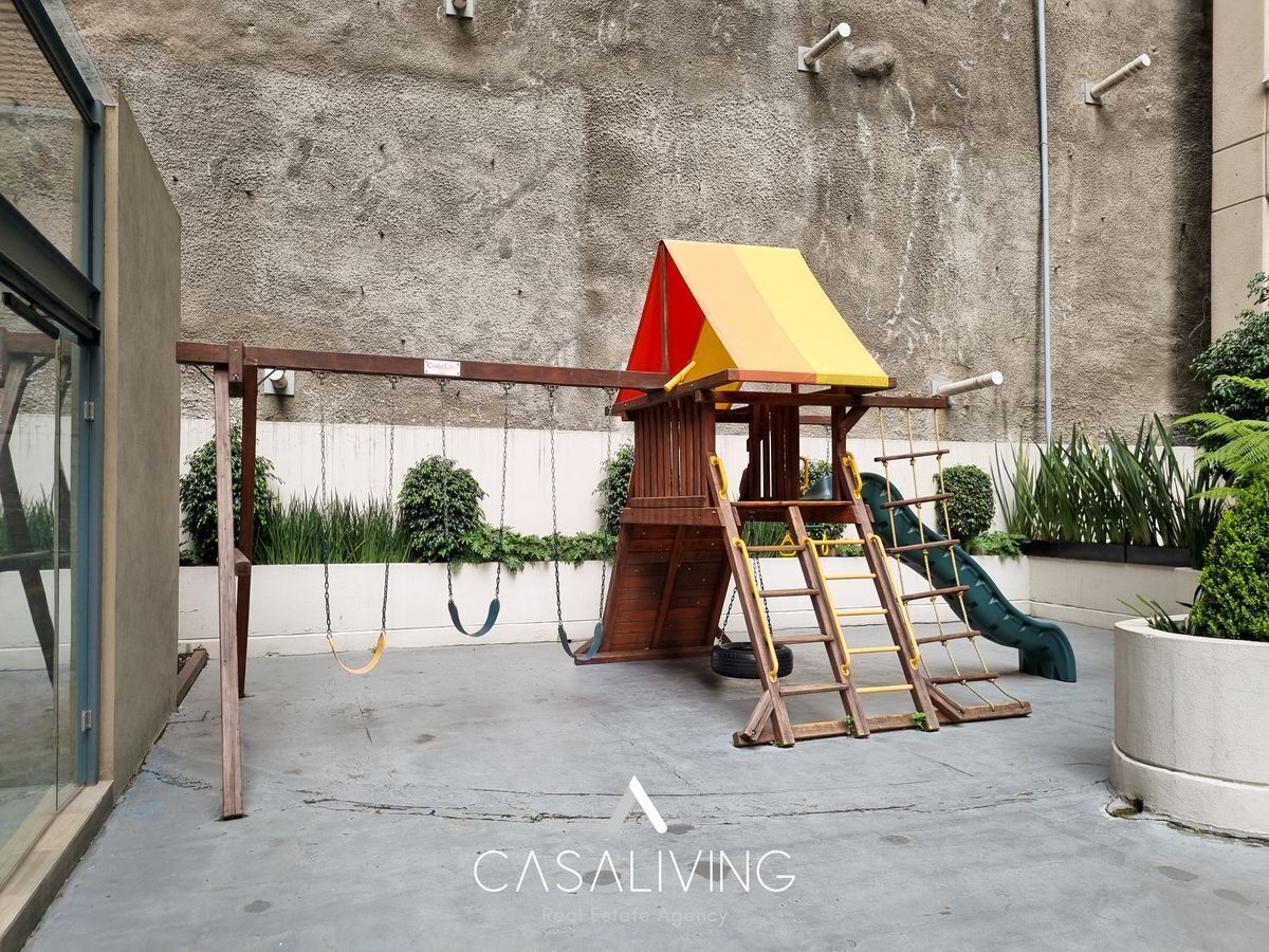 El edificio posee lobby salón de fiestas para 100 personas aproximadamente, jardín con asador y juegos para niños, ludoteca y gym.