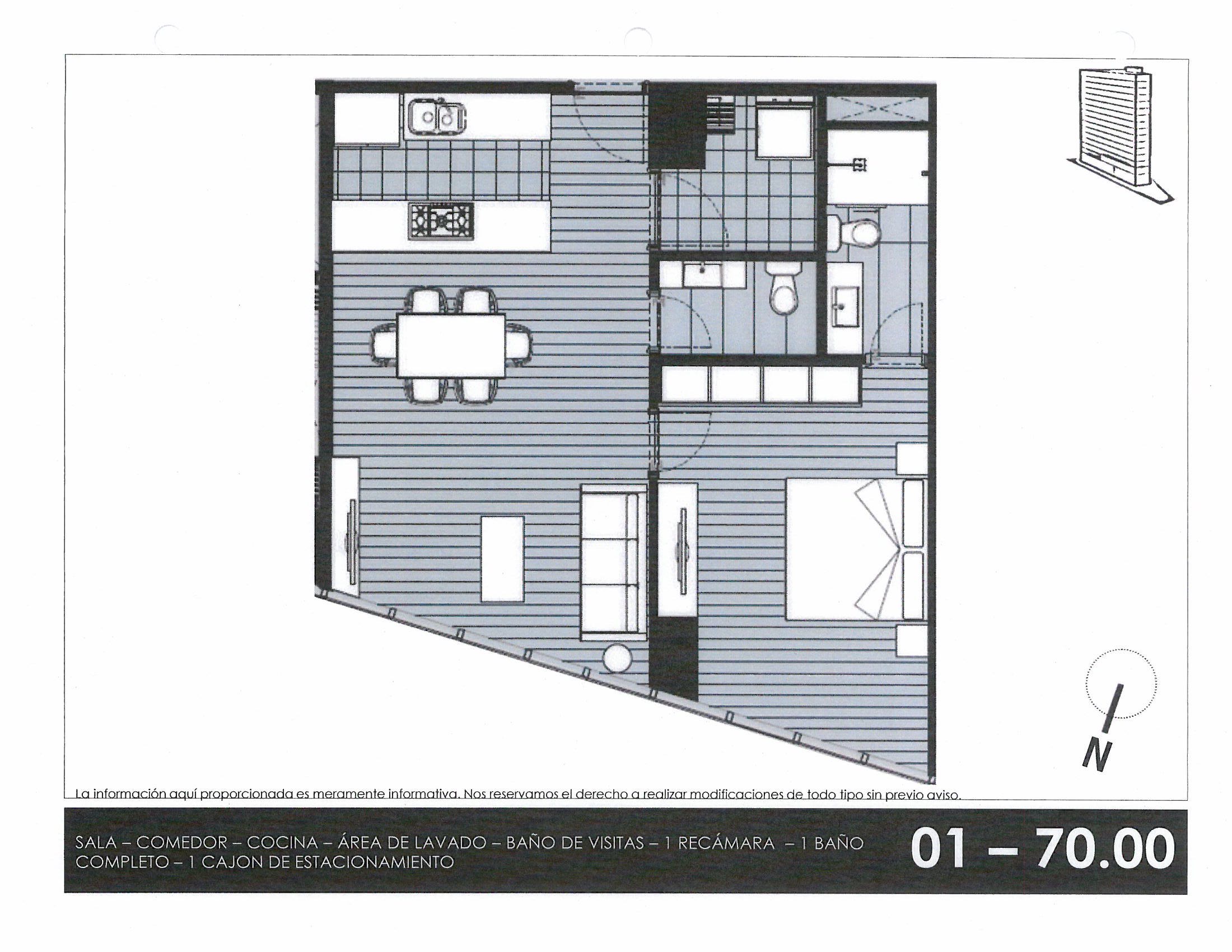 DEPARTAMENTO EN PERFECTO ESTADO. 71 M2. COMPLETAMENTE AMUEBLADO Y EQUIPADO. MUY BIEN DECORADO. ESPACIOS MUY AMPLIOS. BAÑO DE VISITAS. AREA DE LAVADO. LINDA COCINA ABIERTA. AMPLIA SALA COMEDOR. RECAMARA CON GRANDE ARMARIO Y BAÑO MUY ESPACIOSO. ACABADOS DE ALTA CALIDAD. MUY LUMINOSO. 1 CAJON DE ESTACIONAMIENTO. COMPLETO CONJUNTO DE AMENIDADES. TORRE MUY BIEN UBICADA. VIGILANCIA 24 HORAS CON ACCESO BIOMÉTRICO. MUEBLES INCLUIDOS EN EL PRECIO.
