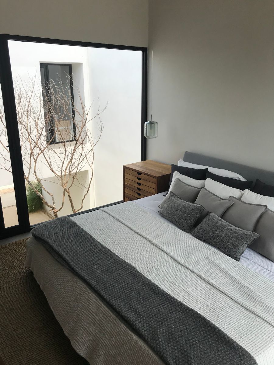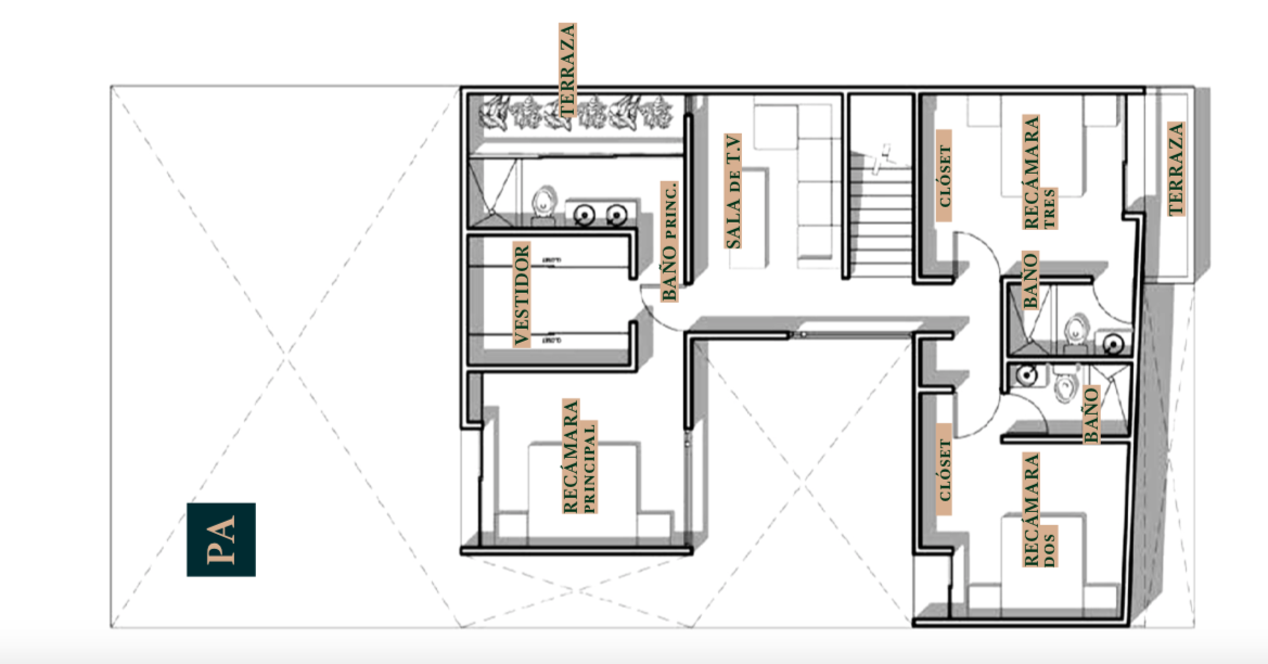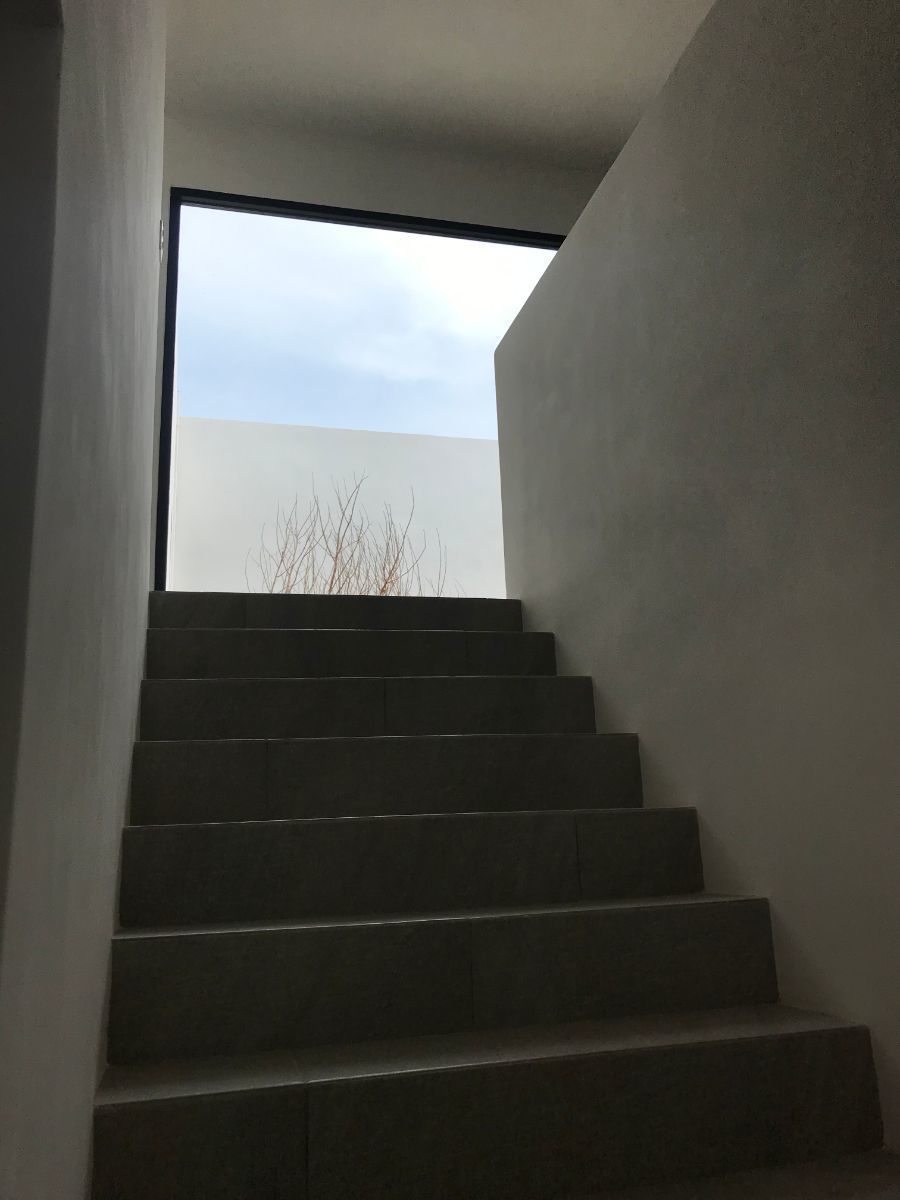 •Acabados interiores: tratamiento a base de pasta acrílica acabado fino con textura de cascara de naranja, cerámica de loseta porcelanite de 90 x 45 cm., cancelería y domos de aluminio anodizado en color negro mate y cristal claro de 6 mm.