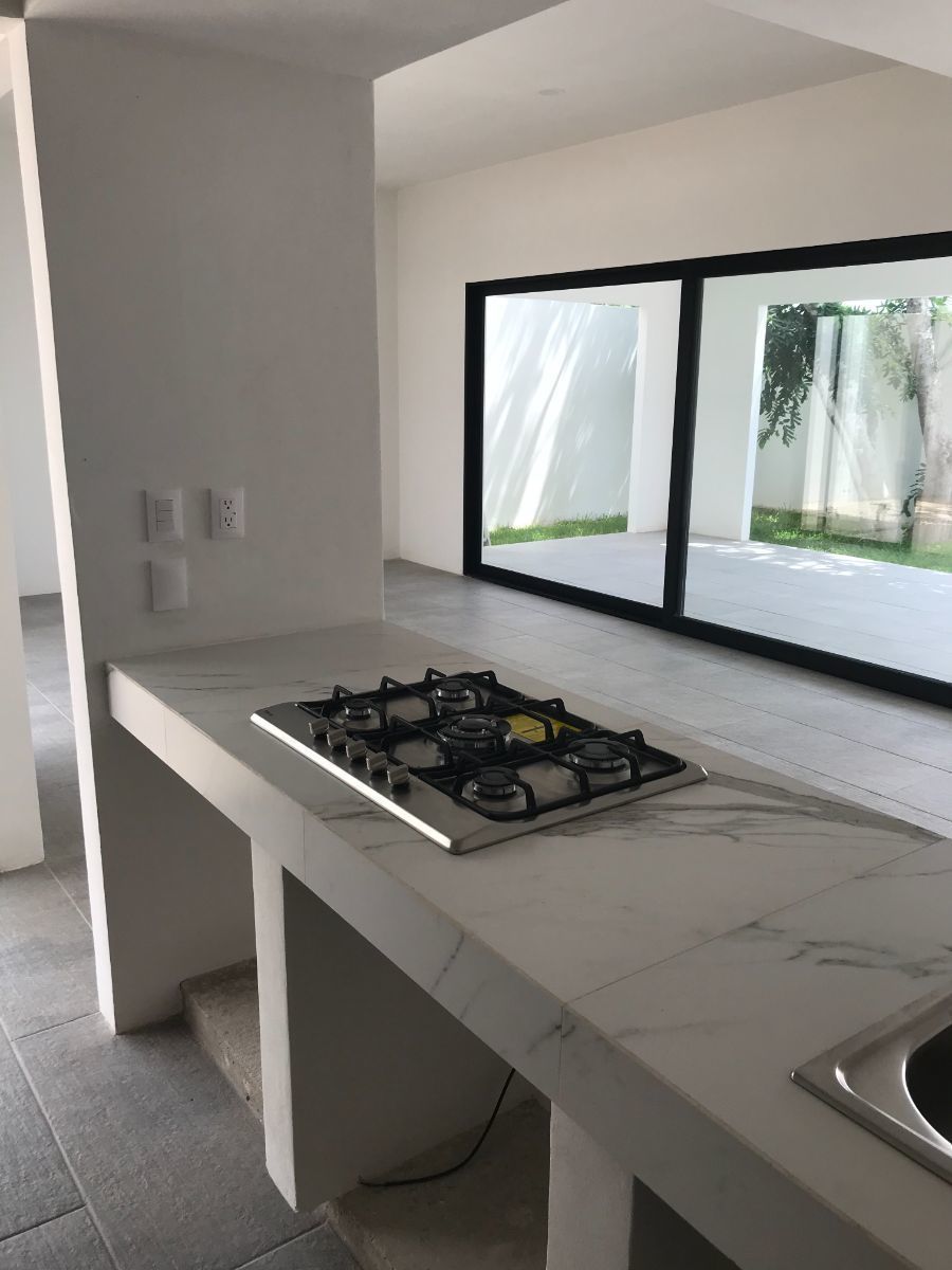 •Equipamiento: lavabos, inodoros, llaves y manerales, lavadero, puertas, cancelería y carpintería en puertas, terrazas y balcones llevan un barandal a base de cristal de 9mm, instalación eléctrica, instalación de gas, instalación hidrosanitaria, preparación en sala y recamaras para aires acondicionados en instalación y drenaje, Incluye toda la carpintería de toda la casa los closet en recamaras y cocina, también incluye estufa y campana