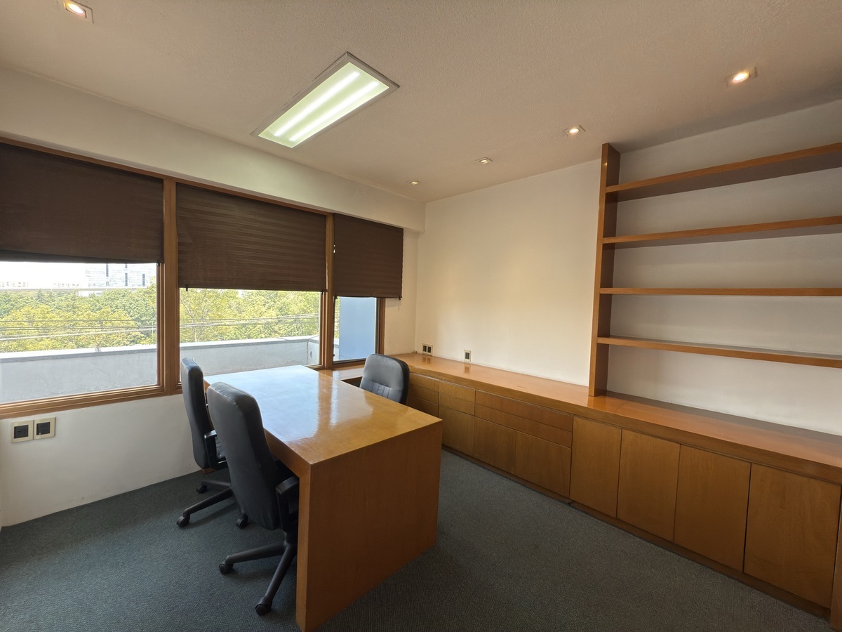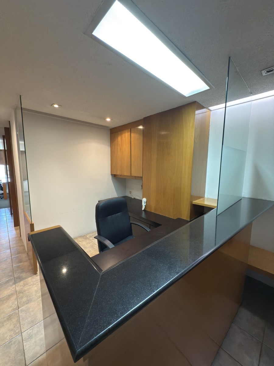 • Oficina amueblada con escritorio, sillas ejecutivas y gabinetes funcionales