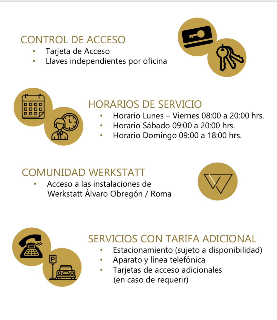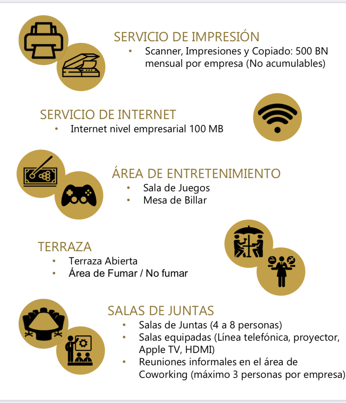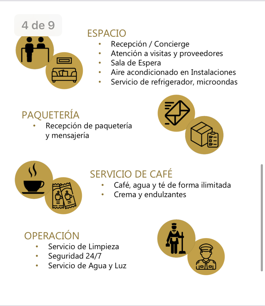 • Nuestros espacios incluyen el mobiliario básico: escritorio, archivero personal y silla ejecutiva