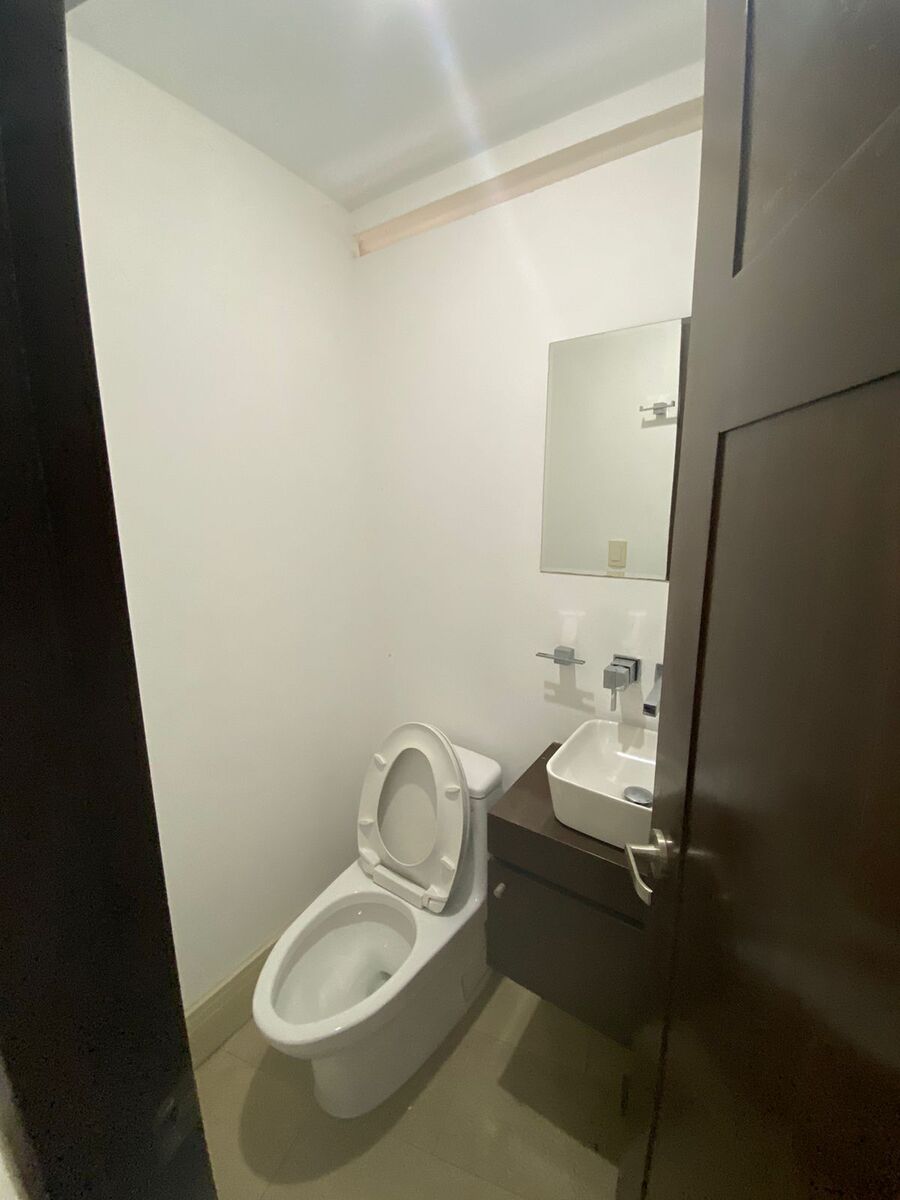 La oficina cuenta con dos niveles, en el primero se encuentra el área para recepción, área abierta, cocina integral, medio baño y terraza. En la segunda planta se encuentran dos grandes privados cada uno con su baño propio y closet/archiveros.