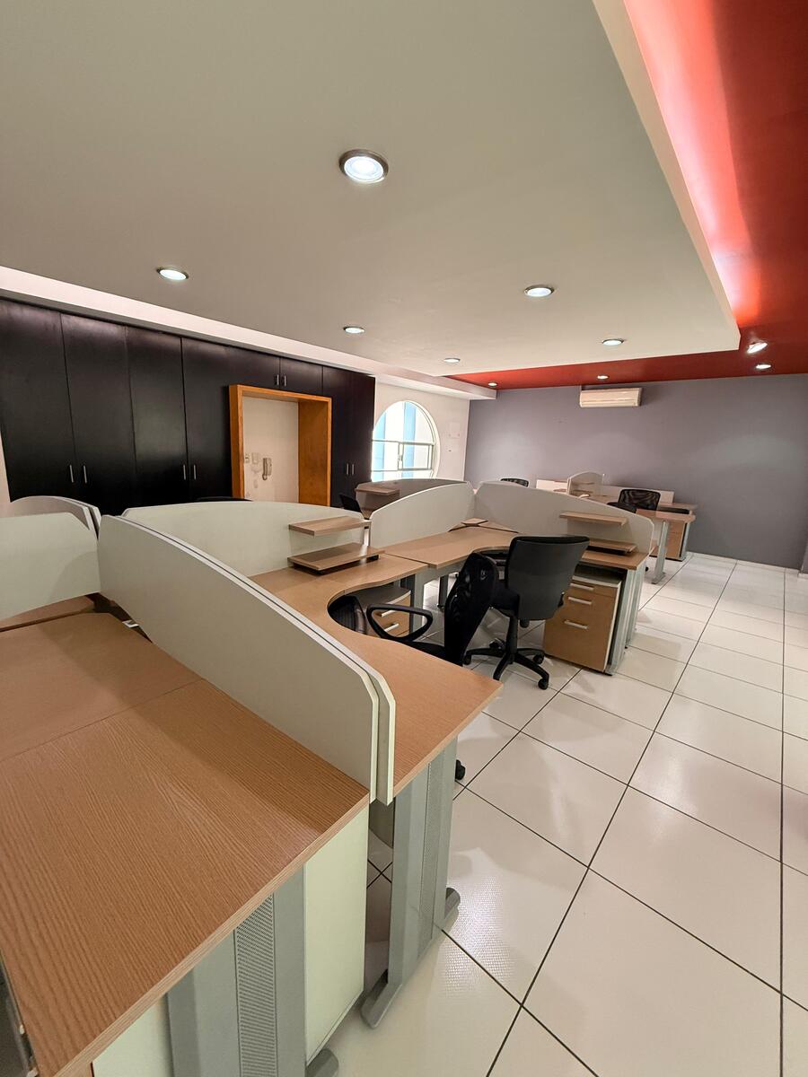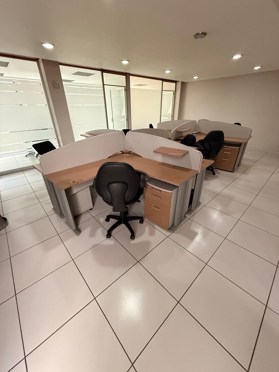 18 cubículos en total, cocineta, 3 medios baños, archivero, además cuenta con 4 lugares de estacionamiento; el edificio cuenta con elevador y vigilancia 24/7