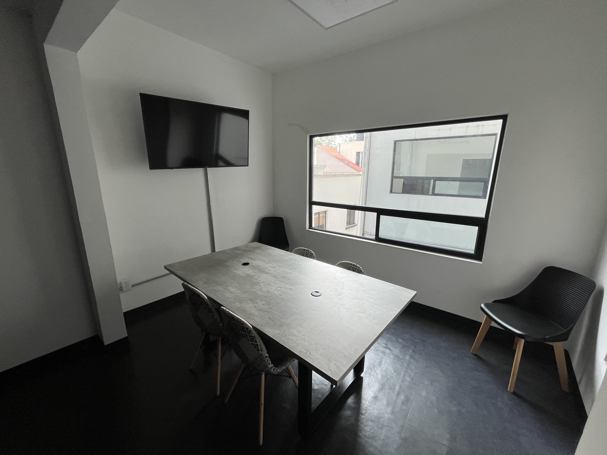Cuenta con 5 hrs de sala de juntas y está recomendada hasta para 14 personas, incluye área de coworking y terraza. Puede adaptarse a las necesidades específicas del usuario.