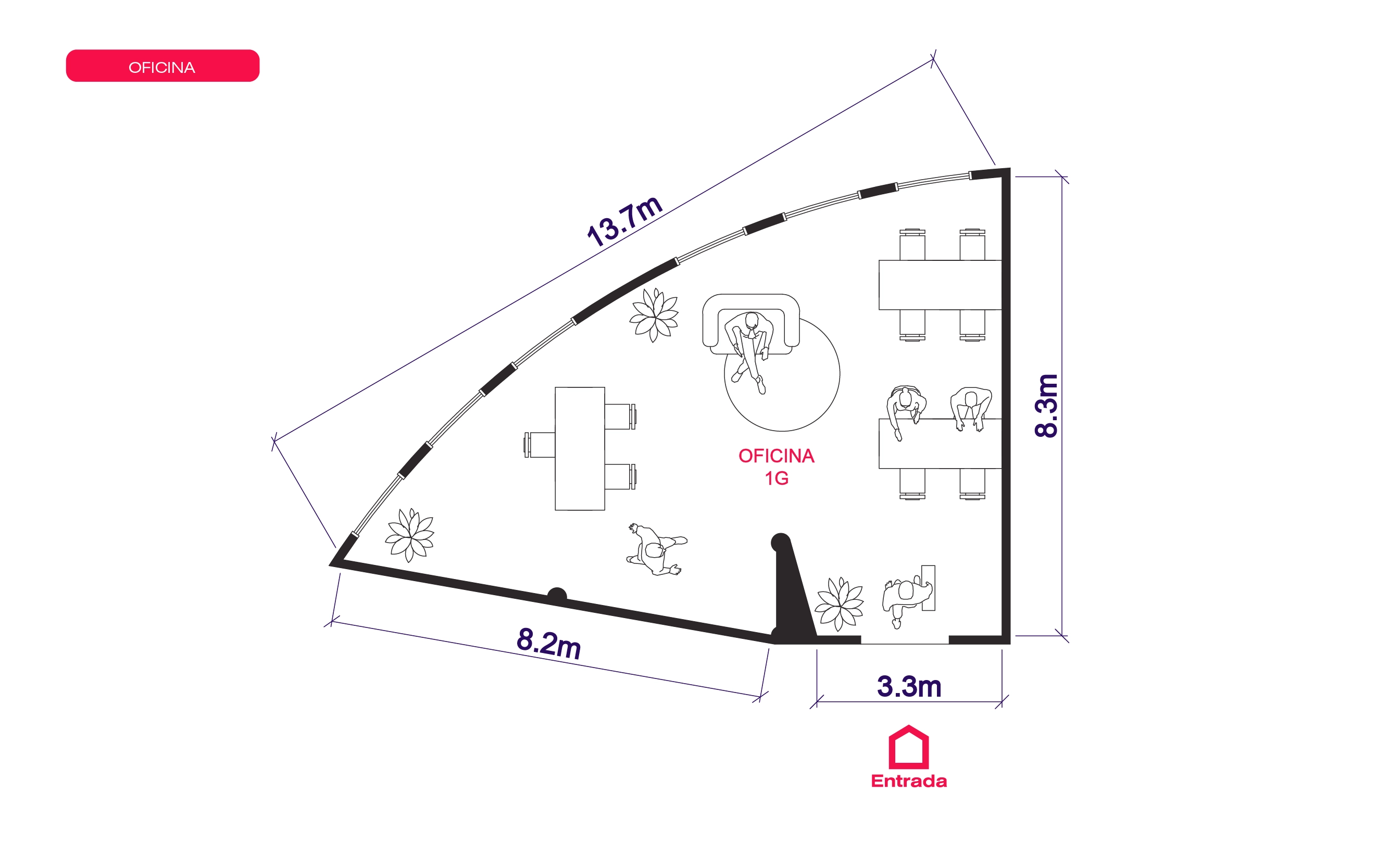 La oficina se encuentra en planta alta (1-G) y ofrece un espacio amplio con iluminación natural.