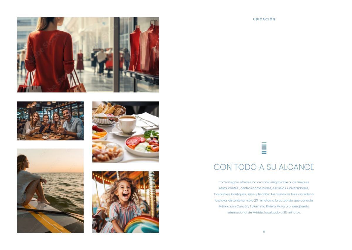 restaurantes , centros comerciales, escuelas, universidades, hospitales, boutiques, spas y tiendas. Así mismo es fácil acceder a la playa, distante tan solo 20 minutos, a la autopista que conecta Mérida con Cancún, Tulum y la Riviera Maya o al aeropuerto internacional de Mérida, localizado a 25 minutos.