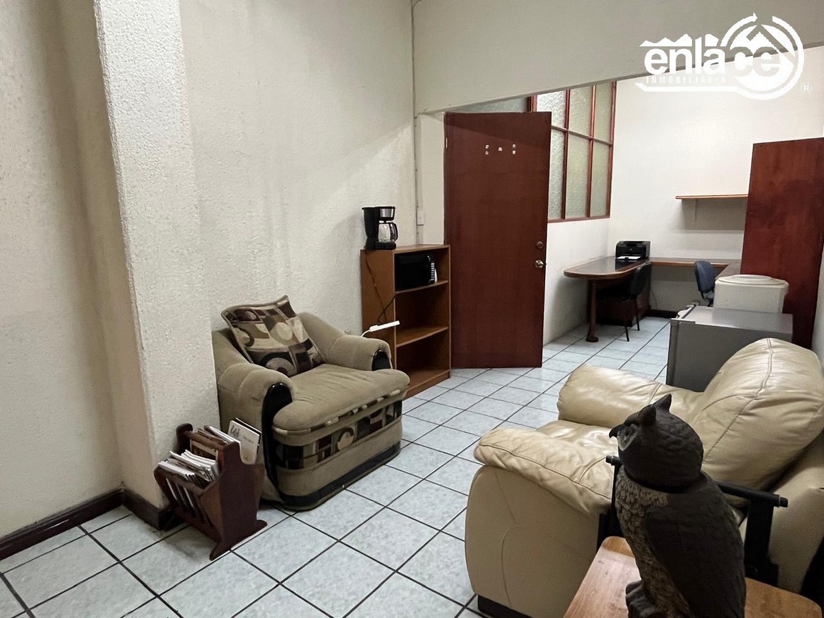 Oficina céntrica en edificio Morasan, con dos cubículos, recepción y medio baño. Elevador.