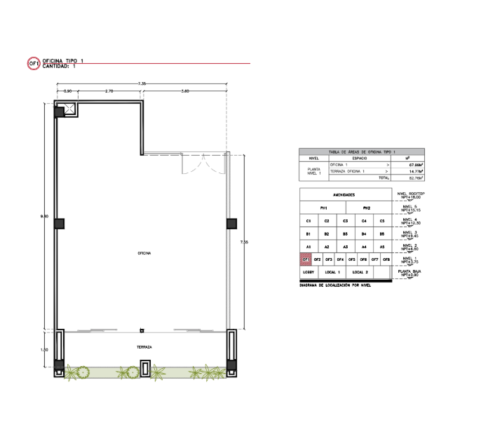 Área: 28.94m2 + Terraza: 7.31m2 TOTAL: 36.25m2