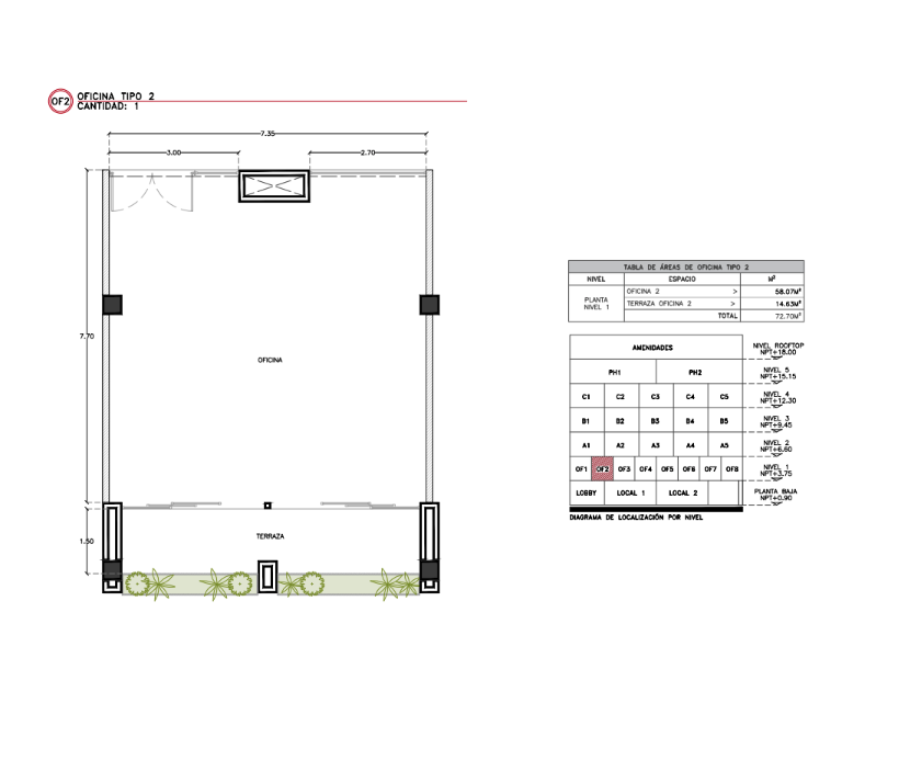 Área: 29.44m2 + Terraza: 7.31m2 TOTAL: 36.75m2