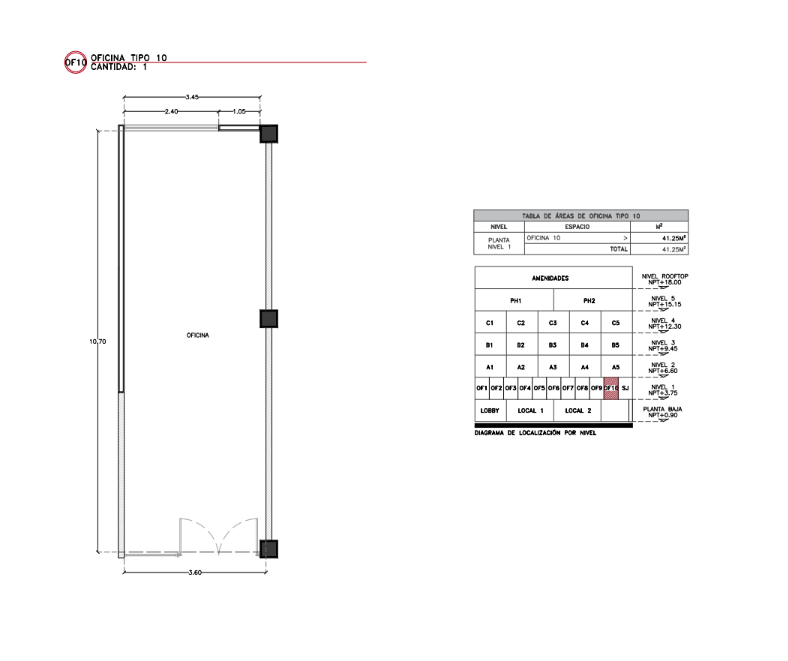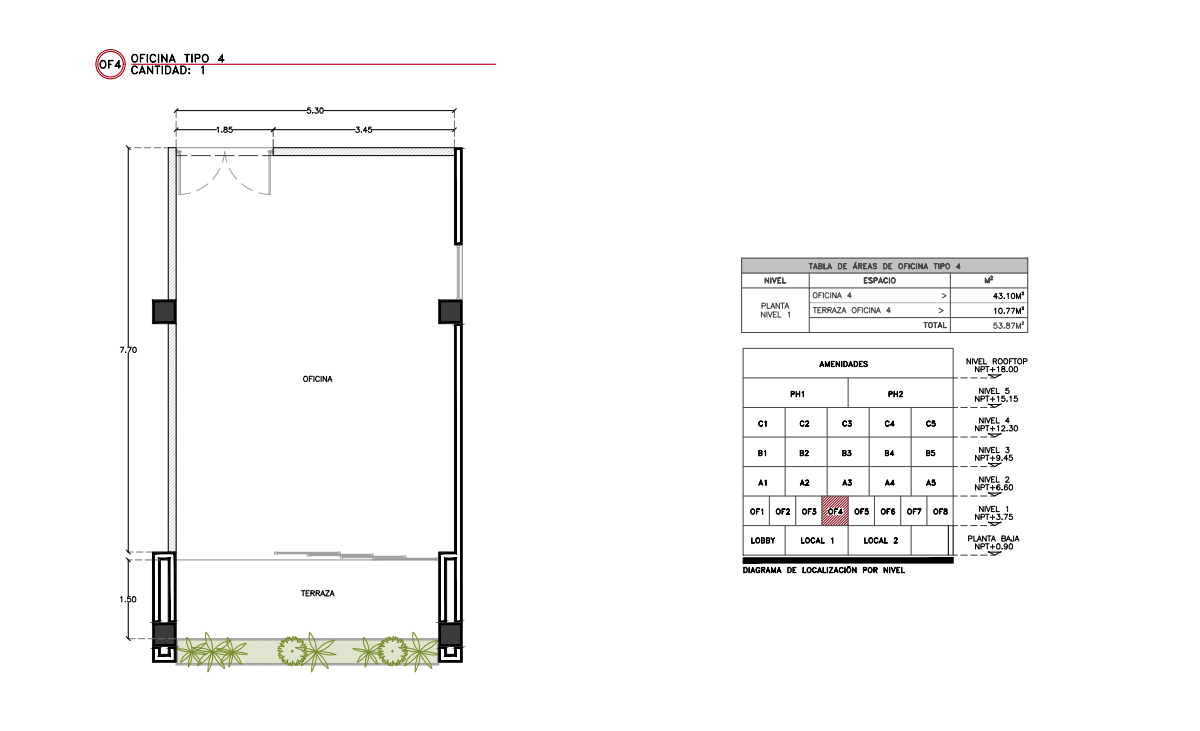Área: 43.10m2 + Terraza: 10.77m2. TOTAL: 53.87m2