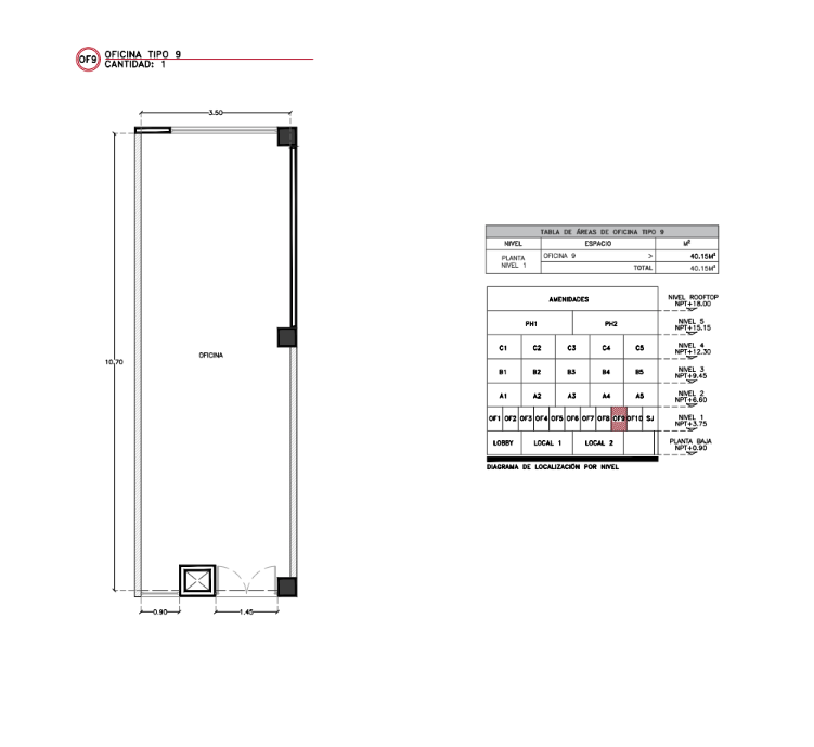 Área: 38.75m2 + Terraza: 7.76m2 TOTAL: 46.21m2